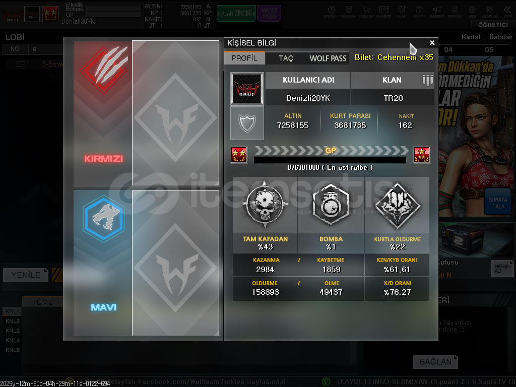 YUKSEK RUTBE SEVENLER İCİN!HESAP MAİLSİZDİR AYLARDIR AFK SORUNSUZ SEKİLDE!HESAPTA 500-2000 ATES BARUT MEVCUT4 SİLAH SLOTU7 GUC SLOTUKART 1 2 3 4 CITIR KUTULU
