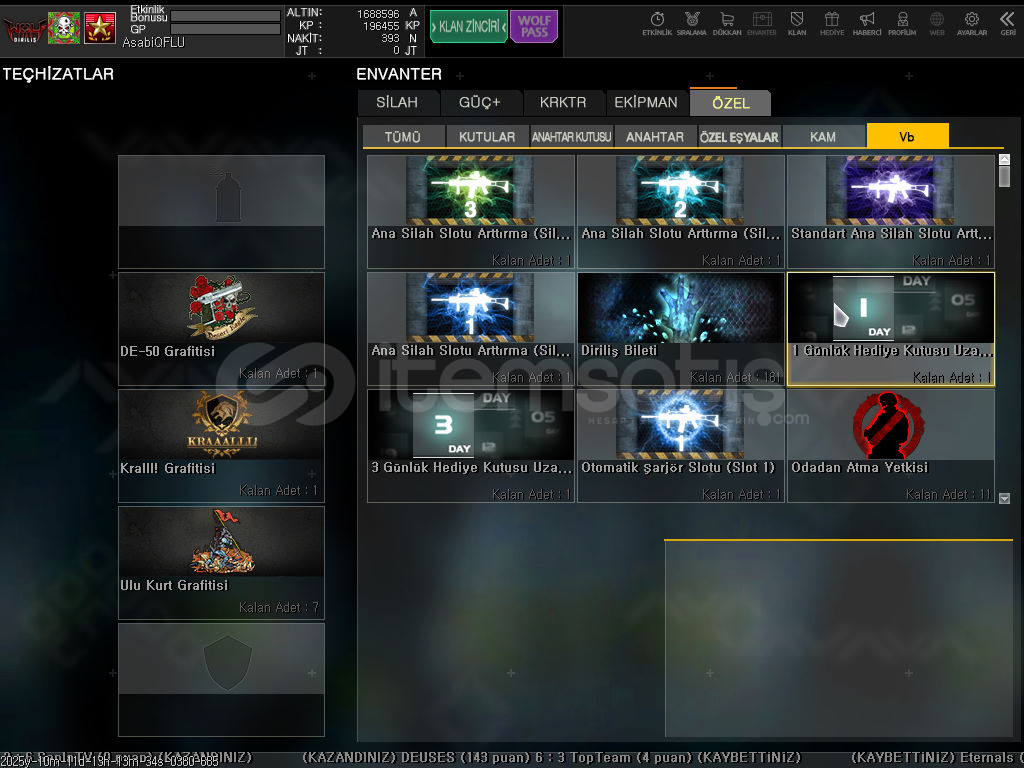 1 SARJOR 3 NORMAL SLOTFULL GUC SLOTLUORTA KUTULUKART 4 Nick= AsabiQFLUSon Giriş= 23.11.2023 10:12:42Rütbe= BaşKomutanJP= 775JPJP İşlem= 141Adet