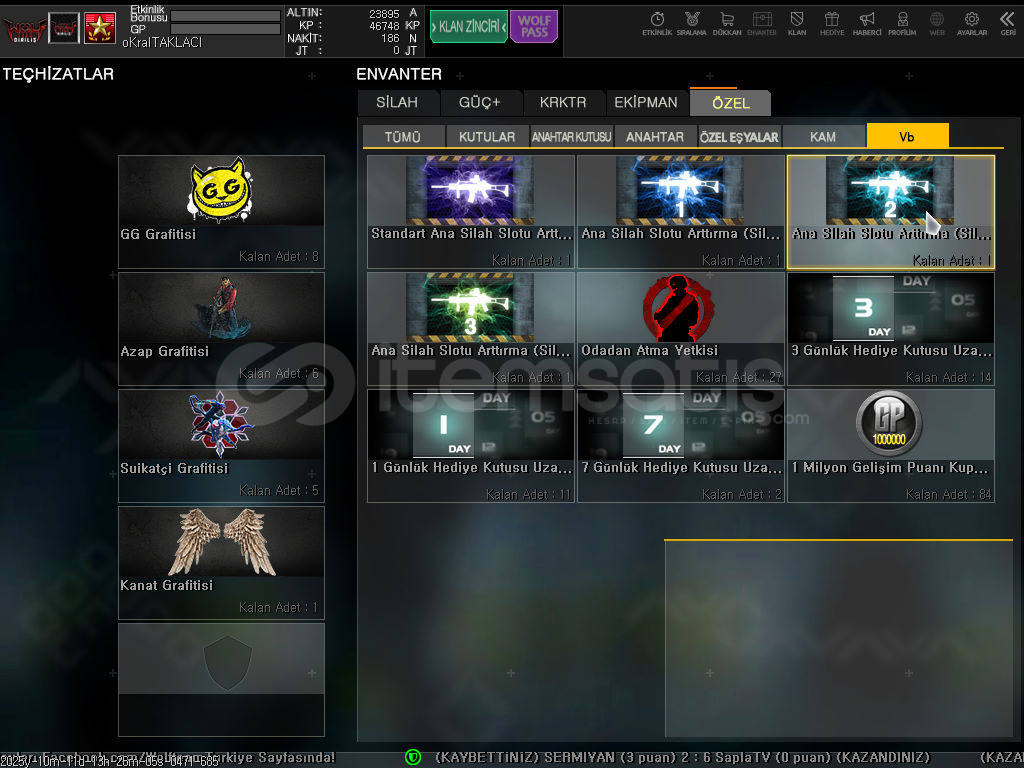 4 SİLAH SLOTLU6 GUC SLOTLUORTA KUTULUKART 1-2Nick= oKraITAKLAClSon Giriş= 20.3.2023 18:11:03Rütbe= JP= 314JPJP İşlem= 141Adet