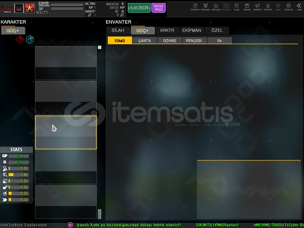 MSN SİZ BAŞKOMUTAN 1 SÜRESİZLİSİLAH SLOTLARI AÇIKTIRGÜÇ SLOTLARI HEPSİ AKTİFKARAKTER SLOT 16 ADET AKTİFİÇİ BOŞ UYGUNA 330 EKİPMANLARI HEPSİ MEVCUT HESAPTA AFK HESAP MSN UNUTULMUS KUTULUTALEP ATARAK MSN DEĞİŞİM TALEP EDEBILIRSİNİZNEDEN BİZ?----------Satın Alırken Video Kaydı Alınız Gİriş YapılmazsaEkran Kaydını...