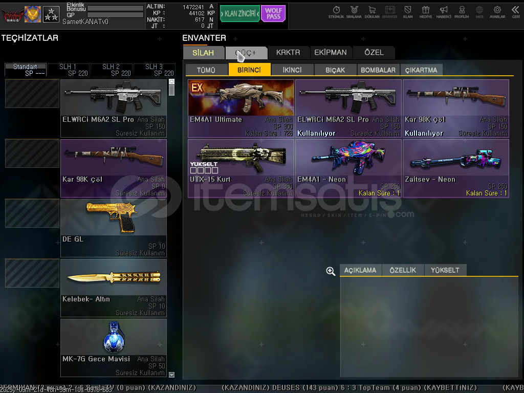 HESABIN SİLAH VE GÜÇ SLOTLARI FULL AÇIKTIRÖLÜ FİYATTAN ALICISINI BEKLİYORMSNSİZDİR GÜVEN AMAÇLI PROFİLİME DEĞERLENDİRMELERİME BAKABİLİRSİNİZ.