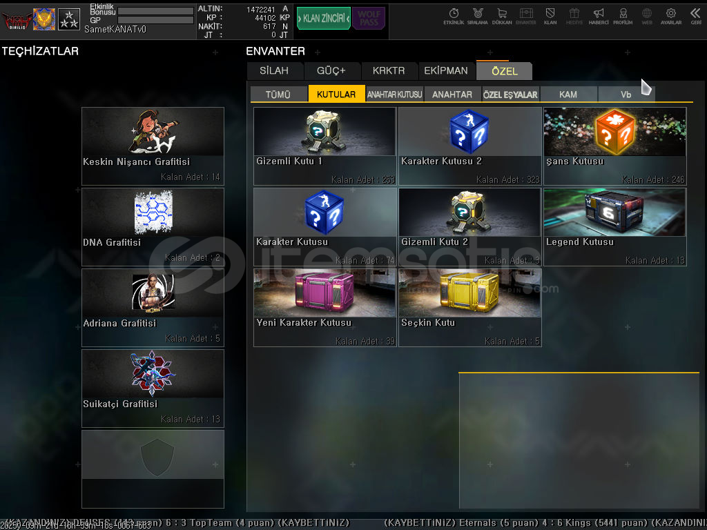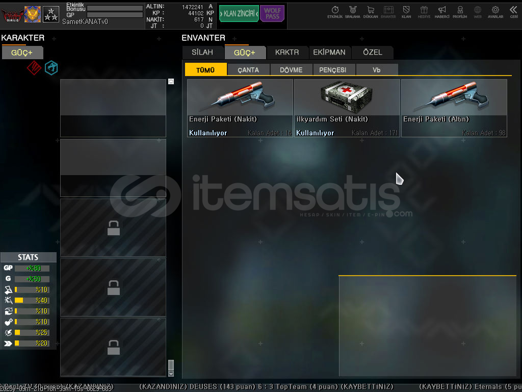 HESABIN SİLAH VE GÜÇ SLOTLARI FULL AÇIKTIR
