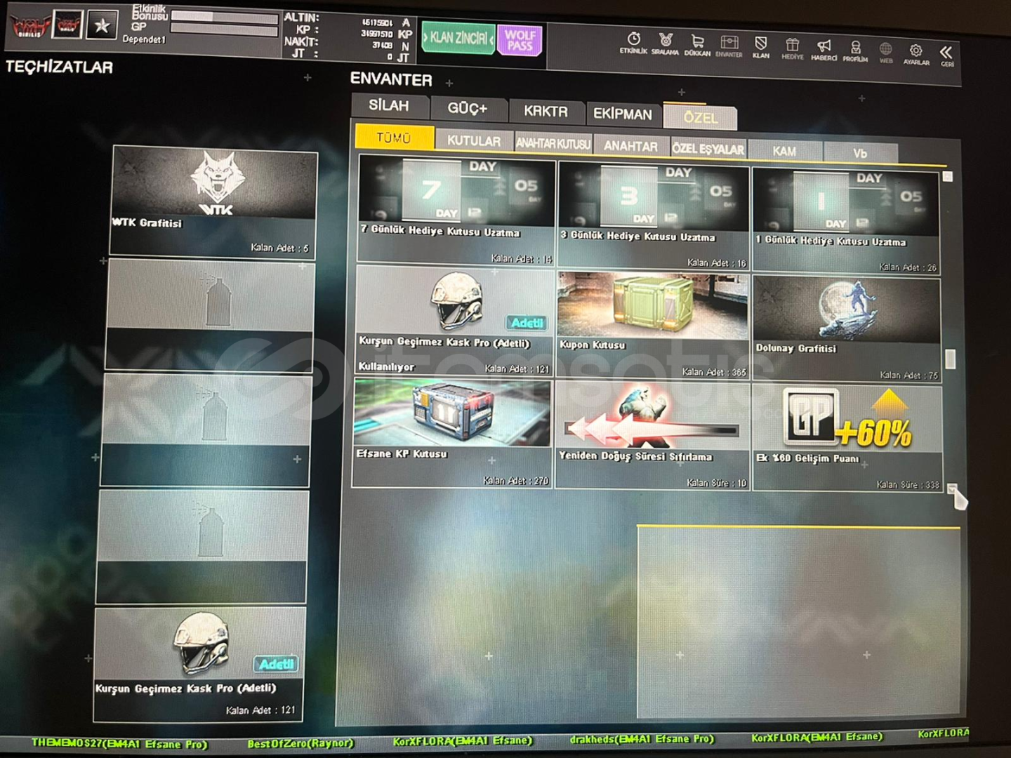 SİLAH SLOTLARI GÜÇ SLOTLARI KARAKTER SLOTLARI AÇIKTIR HESAPTAKİ KUTULARI VS BİLEREK AÇMADIM ALAN KİŞİ İSTEDİĞİ ŞEKİLDE DİZER OLMAYAN KUTULARI ALMASI İÇİN NAKİTİ KARAKTER EKİPMANLARI İÇİN VS KP VAR