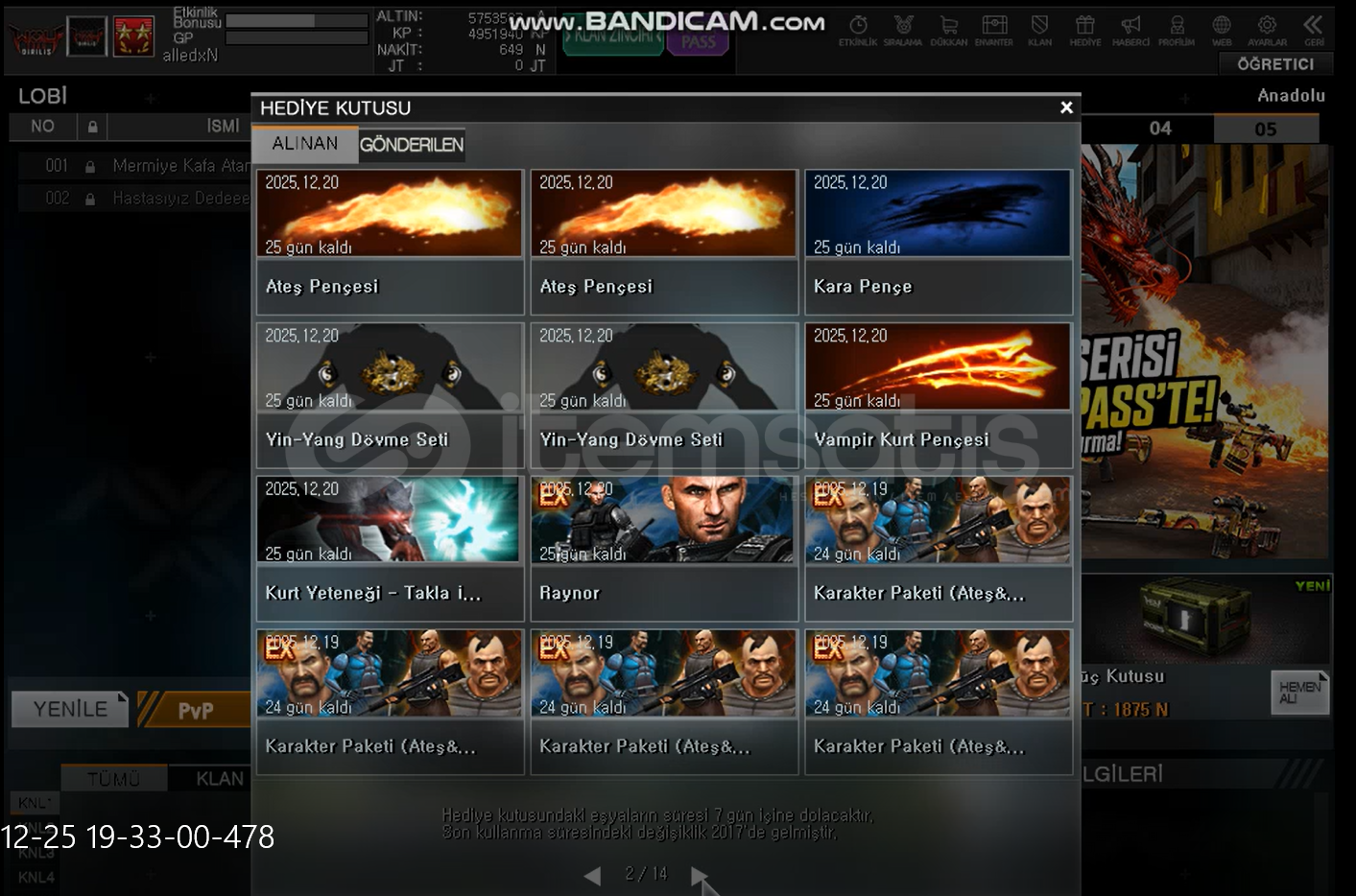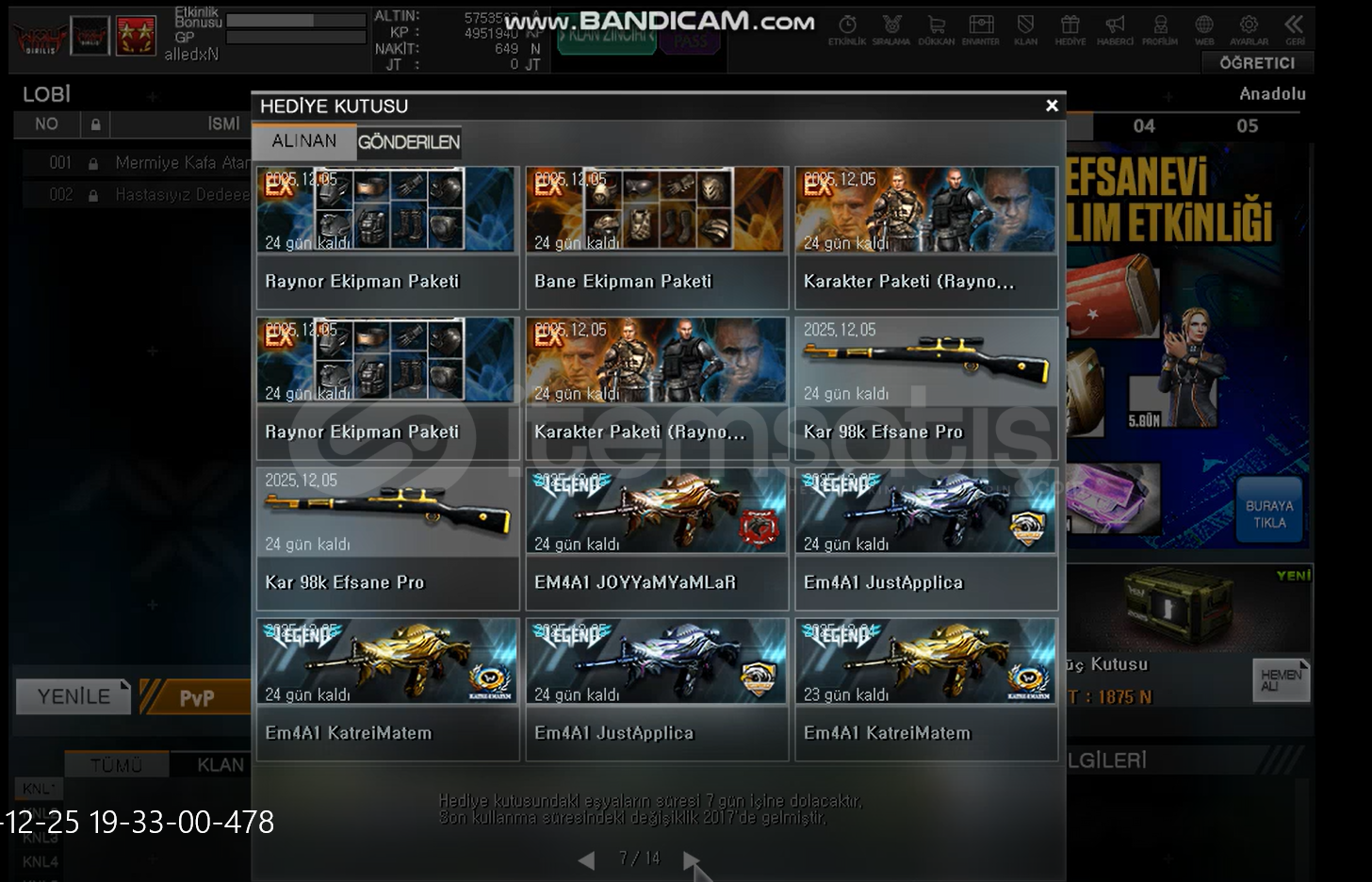 Maili HotmaildirBol kutulu ve Tüm slotları açıktırRütbesi tümenbaşıÜzerindeki orijinal klan ile bi...