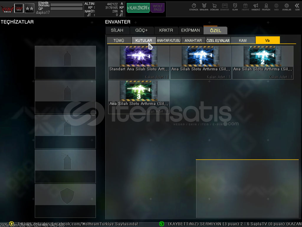 4 SİLAH SLOTU4 GUC SLOTUKART 1 EH KUTULUMAİL ALICI KURACAK