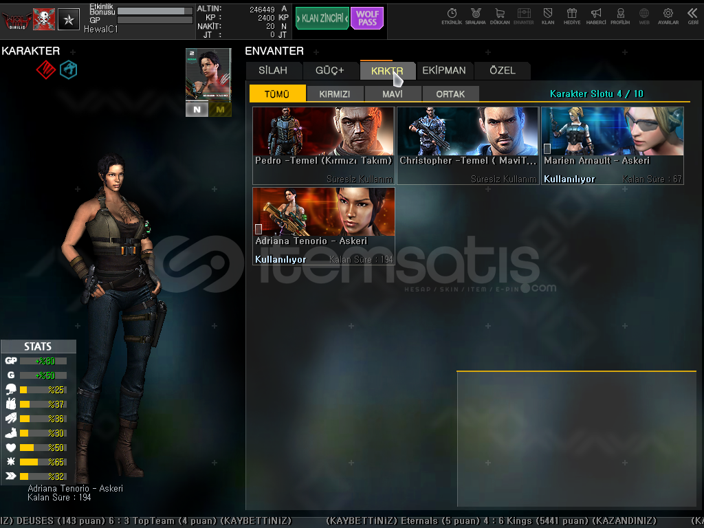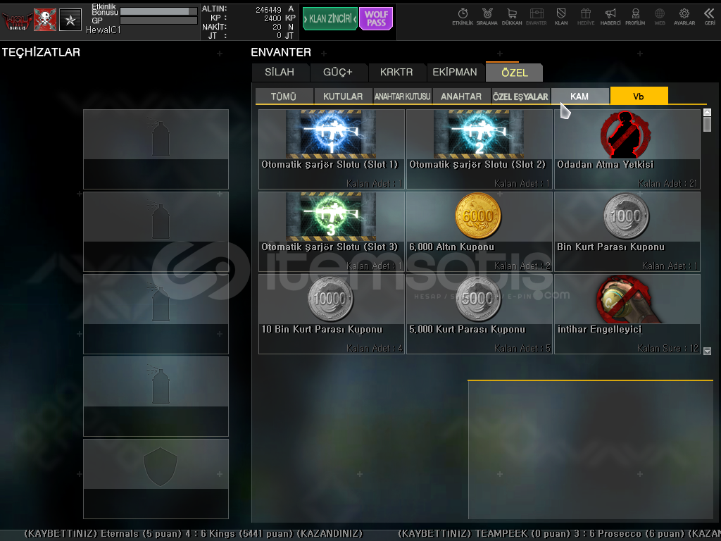 Wolfteam 315 SK DOLU HESAP MSN VAR