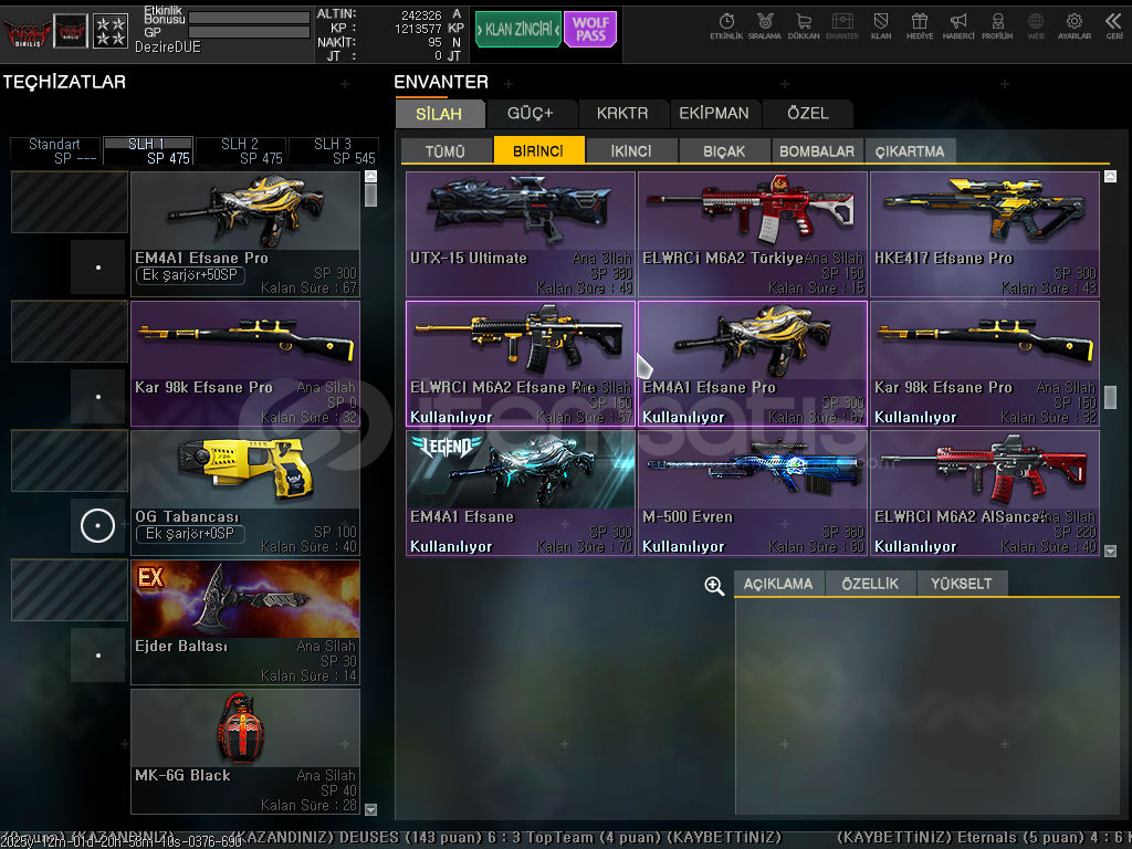 4 ADET SİLAH SLOTU, 1 ADET OTO ŞARJÖR MEVCUT. 4 ADET EK GÜÇ SLOTU MEVCUT. İLK KURULUM MAİL İLE TESLİM EDİLECEKTİR. DETAYLI BİLGİ İÇİN MESAJ ATINIZ.HESAP VİDEOSU: https://www.youtube.com/watch?v=DP9-2lVeSmE