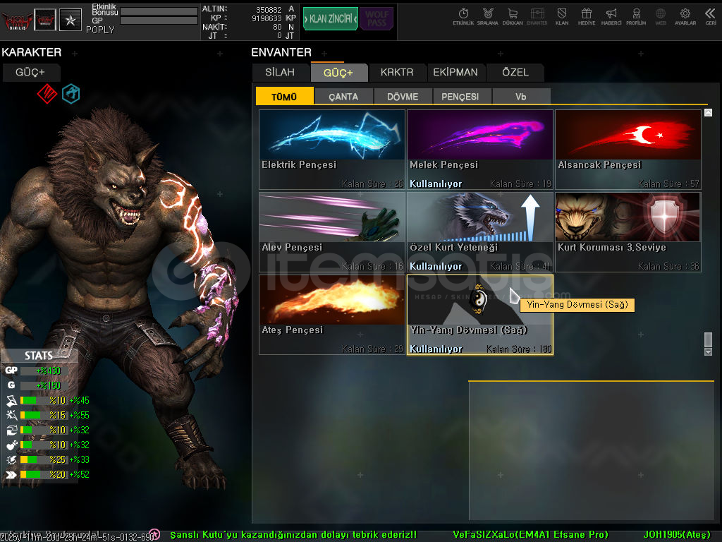 Wolfteam GÜÇ SLOTLU DOLU YILDIZ HESAP