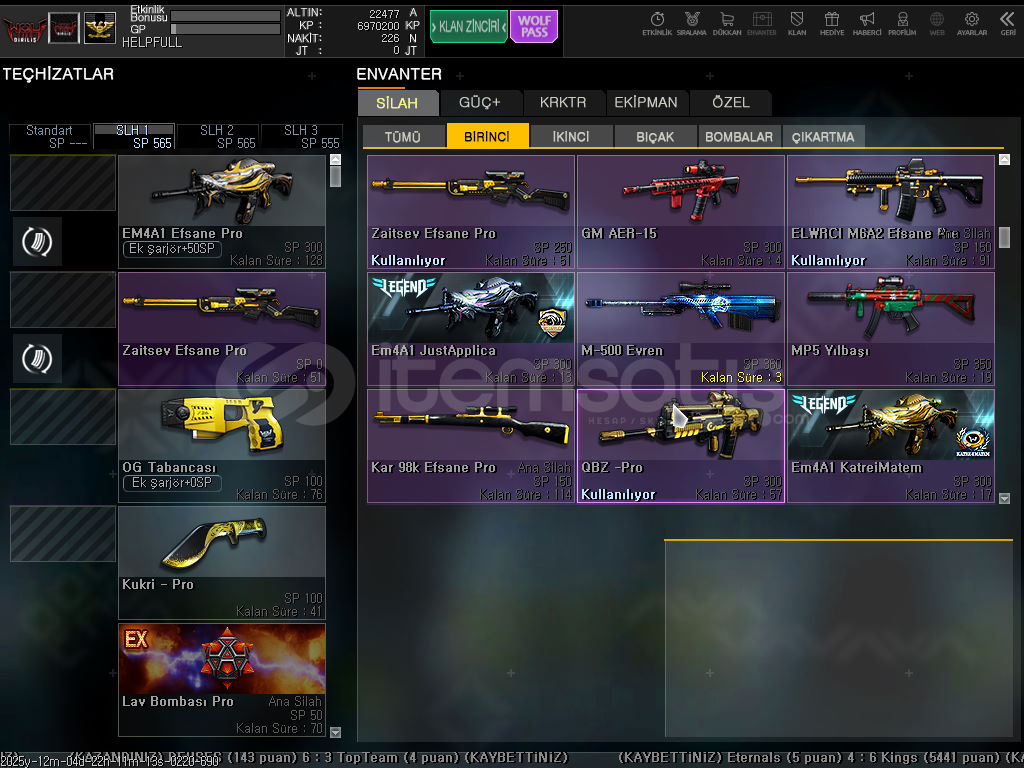 1 ADET SİLAH SLOTU, 1 ADET OTO ŞARJÖR MEVCUT. EK OLARAK 1 ADET GÜÇ SLOTU MEVCUT. 11 GÜNLÜK OG DÖVMESİ PRO MEVCUT. MAİL PASİFTİR, ULAŞILMIYOR. DETAYLI BİLGİ İÇİN MESAJ ATINIZ.HESAP VİDEOSU: https://www.youtube.com/watch?v=8fr4luh65xo