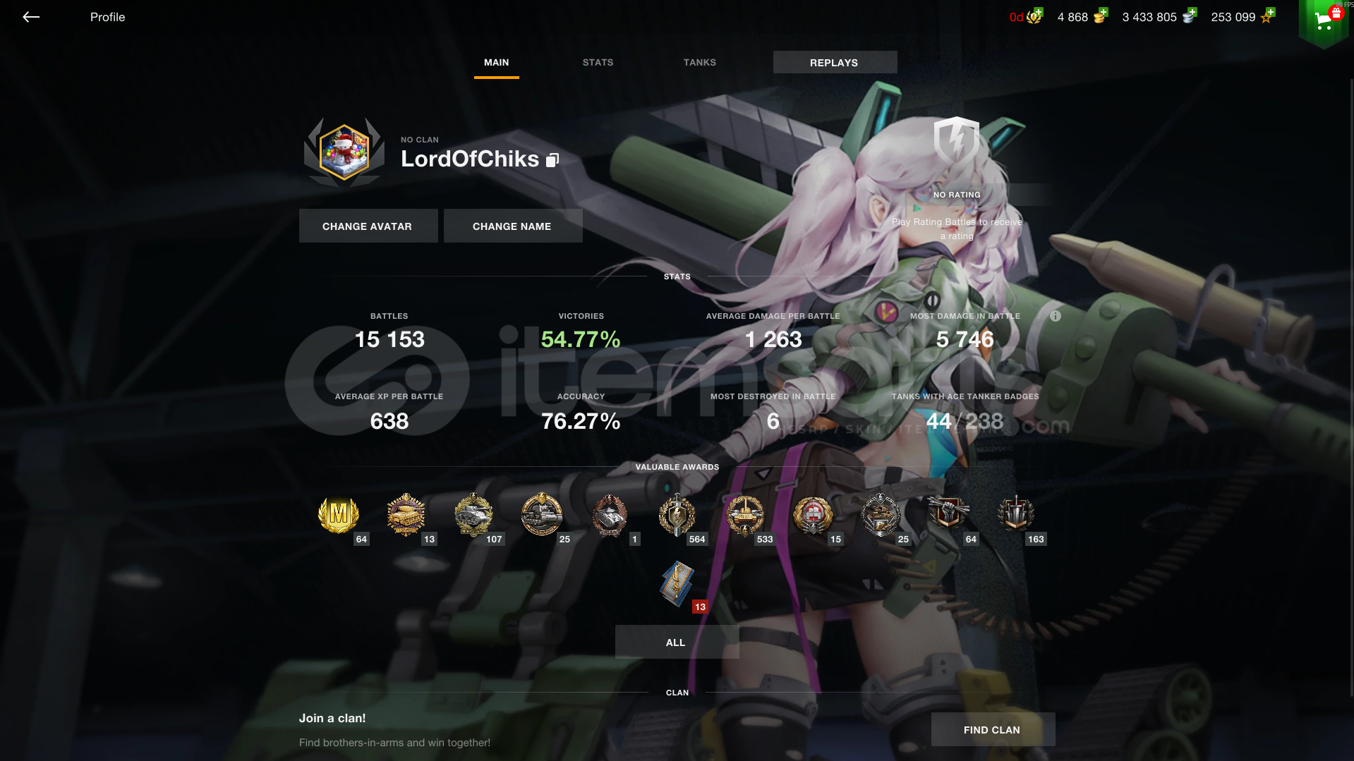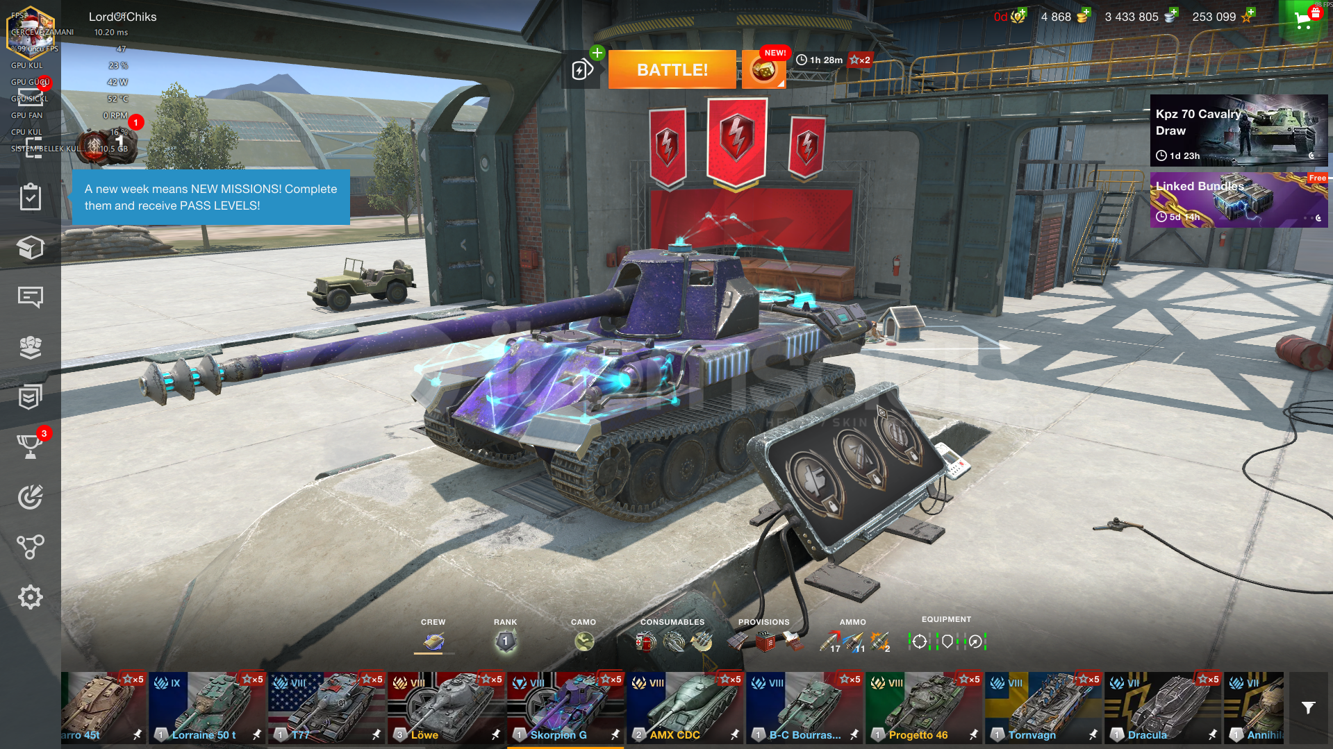 4800 ALTIN + 3 MİLYON KREDİ VE 253K SERBEST DENEYİM BULUNMAKTADIR.PREMİUM VE ELİT TANKLAR:Concept 1B-T95E6- KPZ50T-CARRO45T-X...