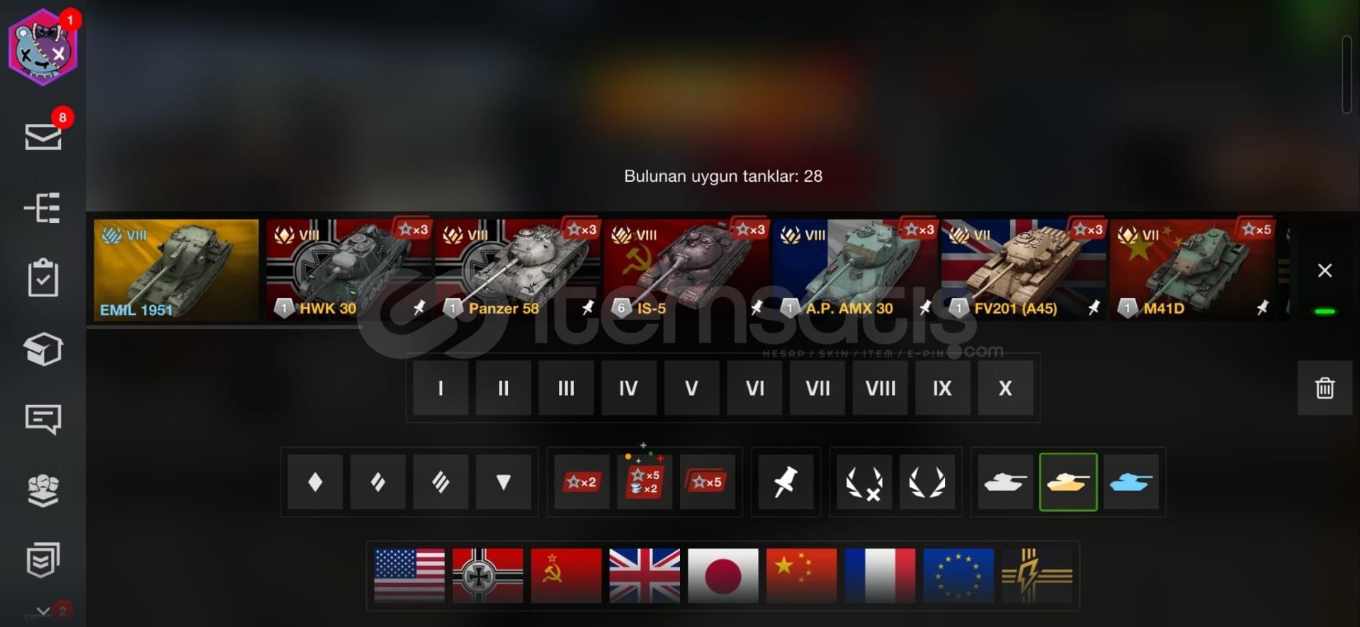 Toplam 28 Adet Premium Tank vardır.