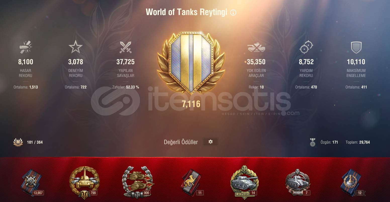 HESAPTA 20 TİER 8 TOPLAMDA PREMİUM 53 ARAÇ VAR AĞAÇLARIN ÇOĞU KASILI TİER 10 24 ARAÇ GARAJDA 18 MİLYON KREDİ 1700 ALTIN VAR MÜRETTEBATLARIN ÇOĞU BOL SKİLLİ SİTEDEKİ 1 HAFTA 1 AY SONRA GERİ ALINAN İLANLARA KANMAYIN TEMELLİ HESAP YILLARIN HESABII ŞU PARANIN 10 KATINA BU HESABI YAPAMAZSINIZ ÜSTÜNE SENELERCE OYNAMANIZ GEREKİR İŞLERİMİN YOĞUNLUĞUNDAN DOLAYI SATIYORUM PAZARLIK PAYI VARDIR .