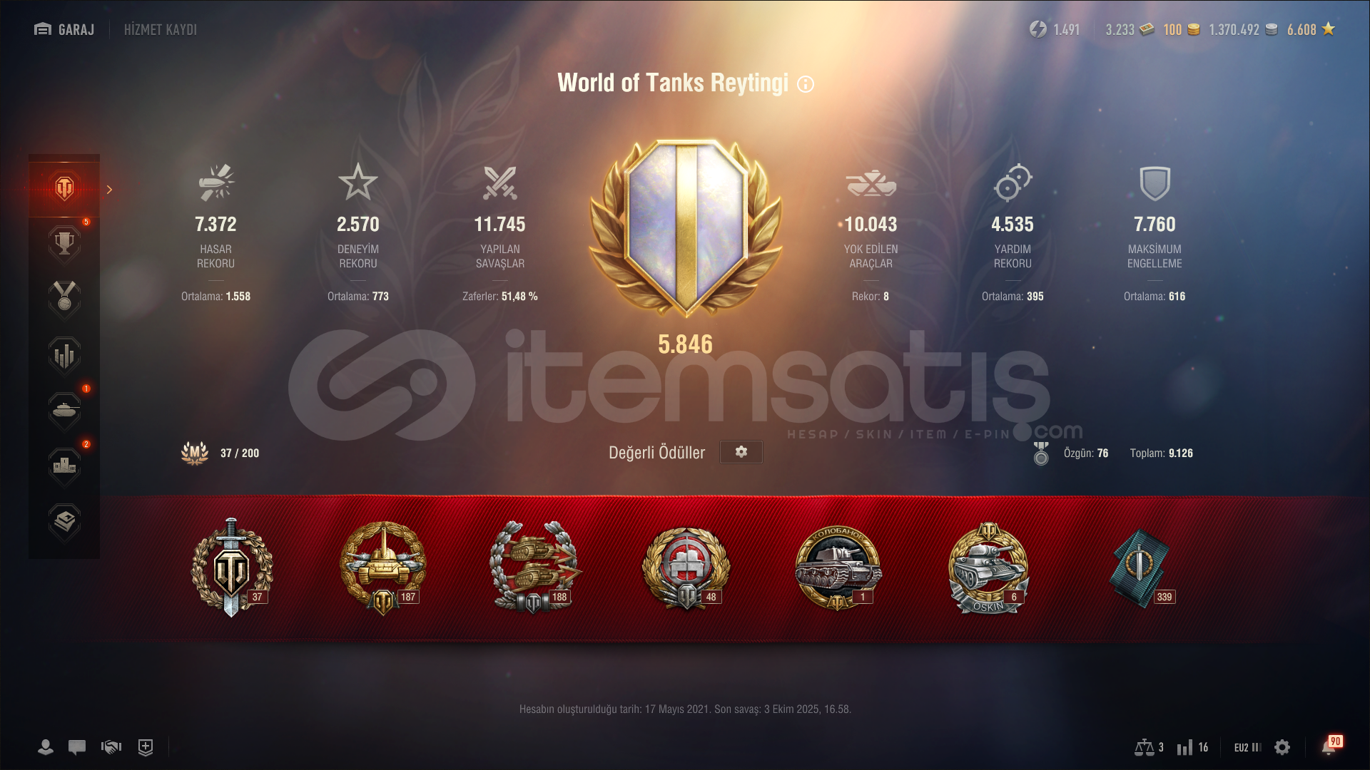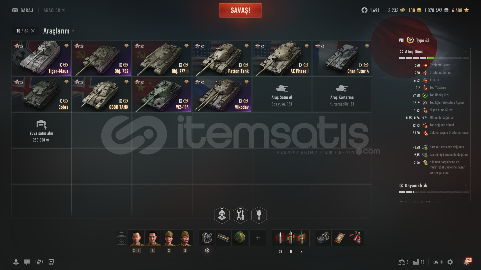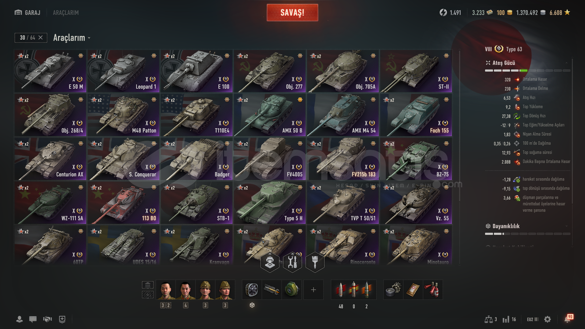 TÜM TANKLARIN MÜREBATLARI ÖZEL VE HEPSİ %100 DÜR TÜM X SEVİYE TANKLARIN 3B SİTTİLİ MEVCUT BÜTÜN AĞAÇLARIN SEVİYE VII KADAR TASLAKLA AÇIKTIR 22 ADET SEVİYE 8DEN 1O KADAR KARIŞIK VARDIR