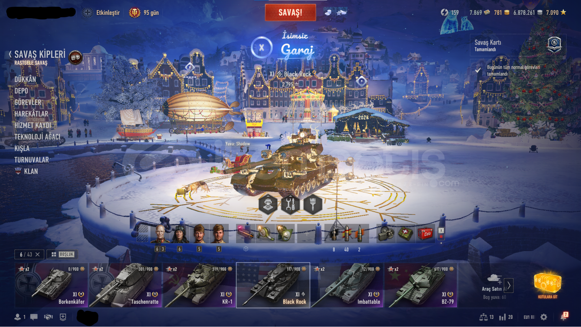 Black Rock Dravec ve Tier 11 tankların olduğu bol premium tanklı hesap Gelişmiş mürettebatlar ve alınmamış...
