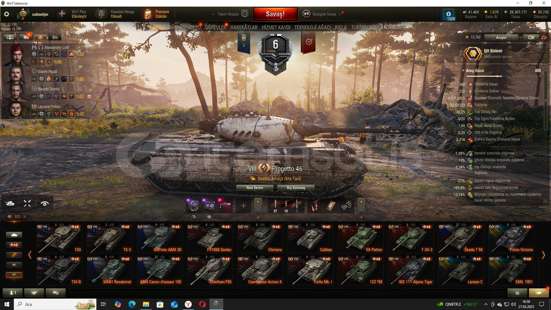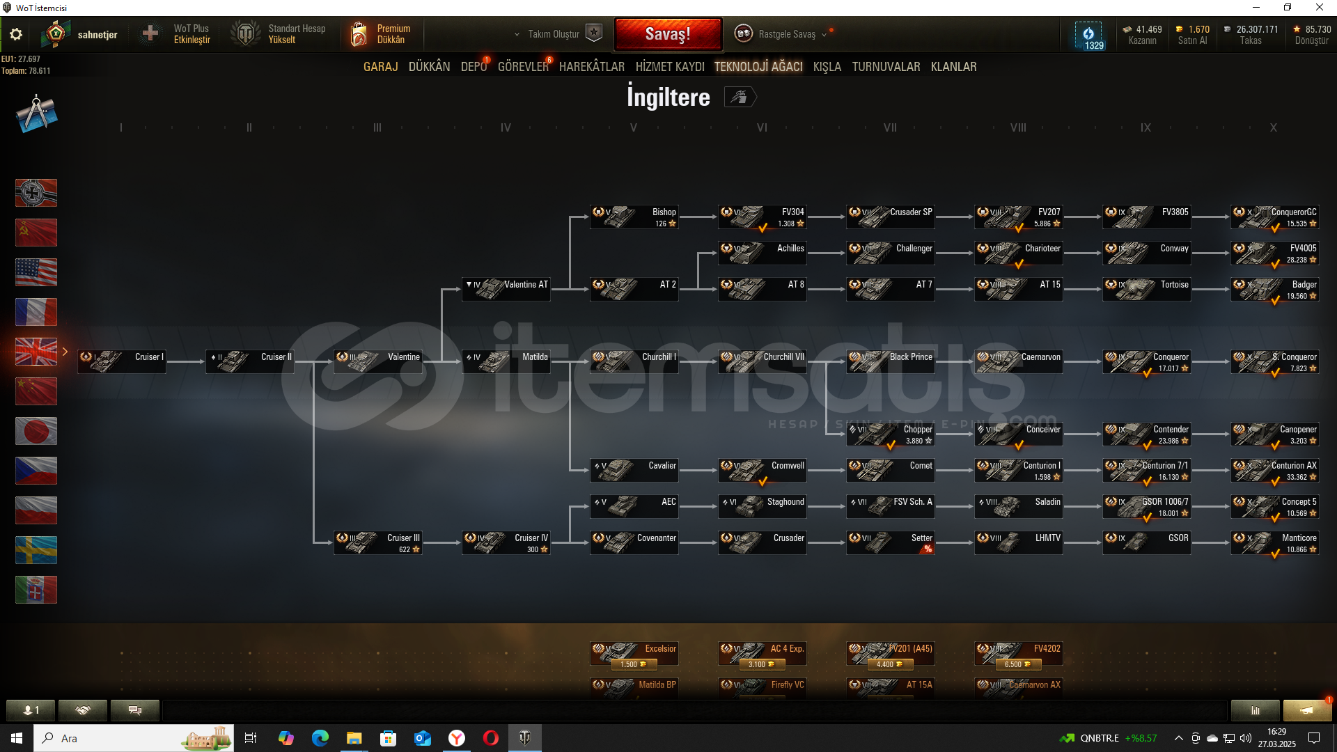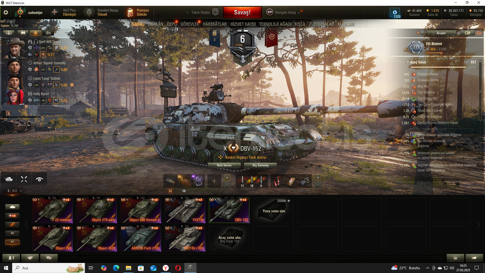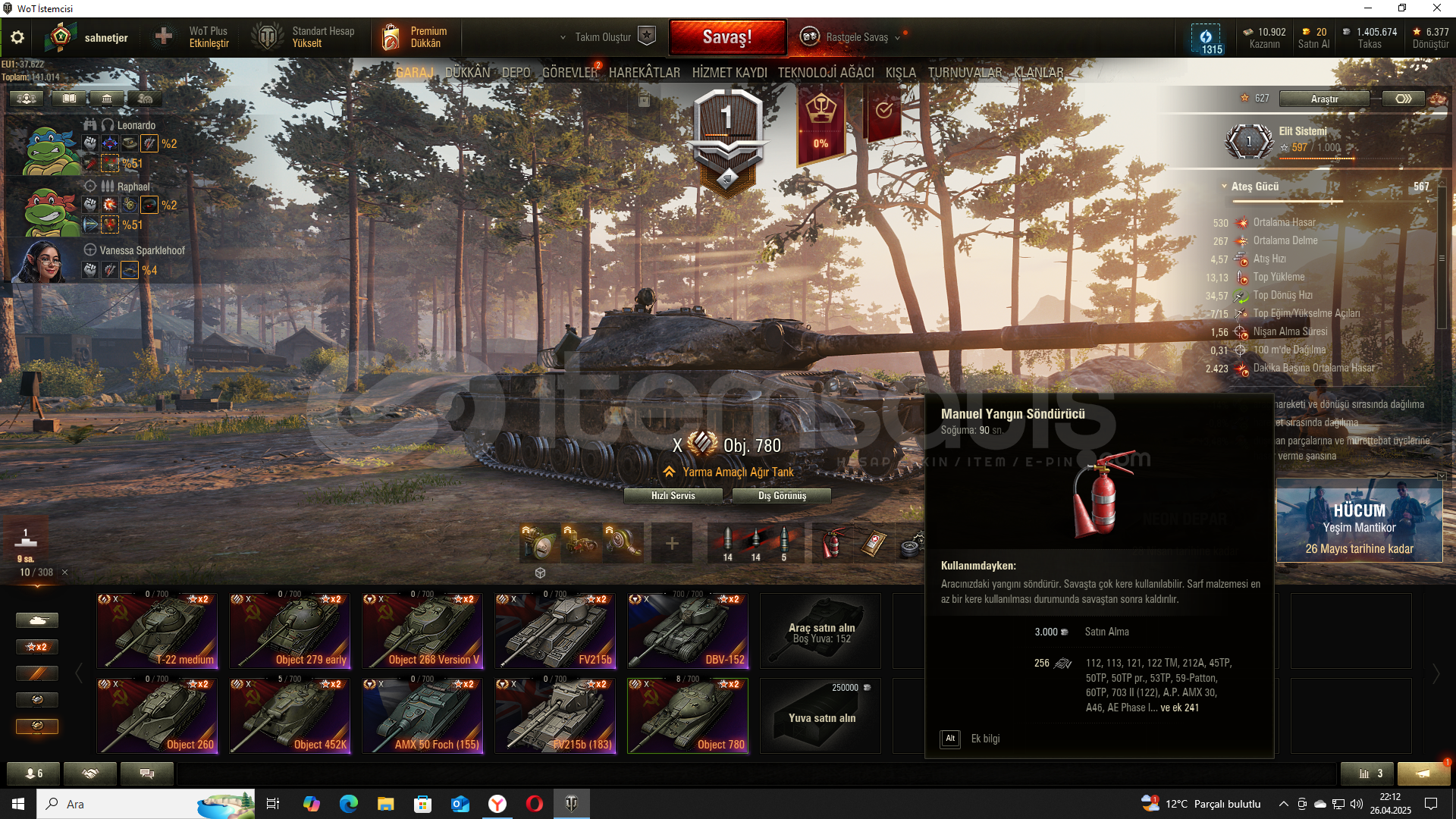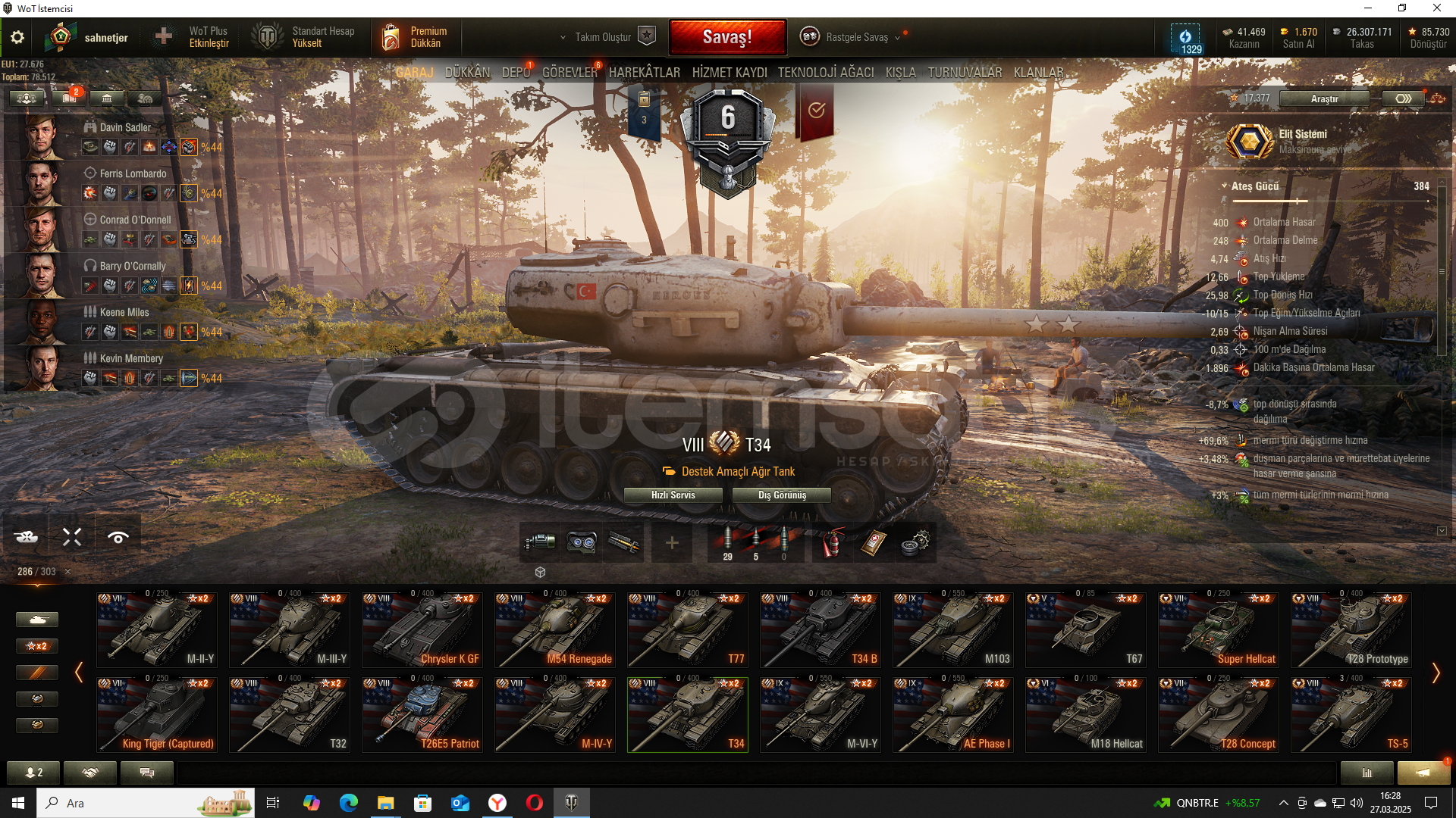 hesap resimlerde de görüldüğü gibi full.tüm 10 seviye tanklar açık.46 adet premium 8 seviye tank varnadir 10 seviye tanklar286 adet tank 7-8-9 seviyeler çoğunluktatüm tanklarda mürettebatlar çok iyi seviyedeextra kışlada alınmamış mürettebatlar da var100000 savaş yapılmışsürekli premium ile oynanmış bir hesap. depo da extra malzeme ve azık bulunmakta.2014 m...