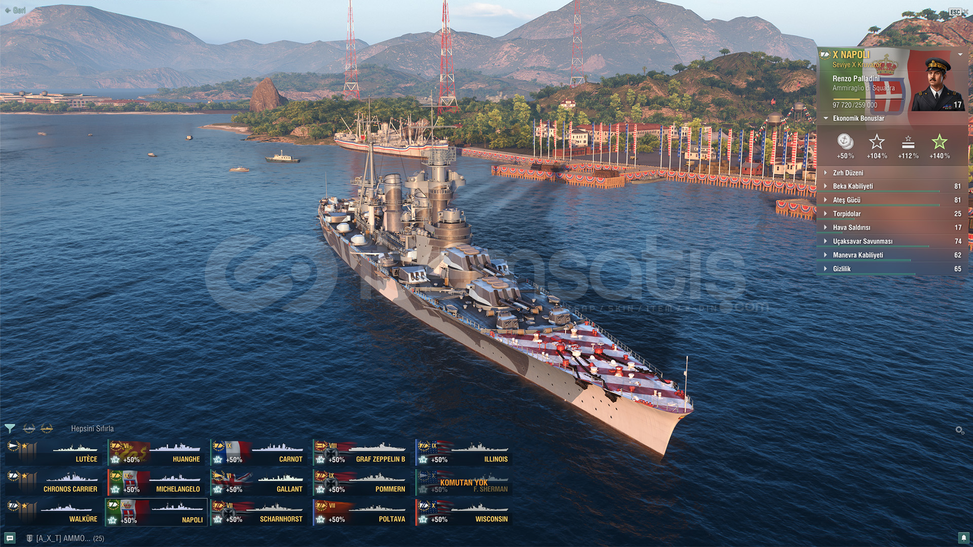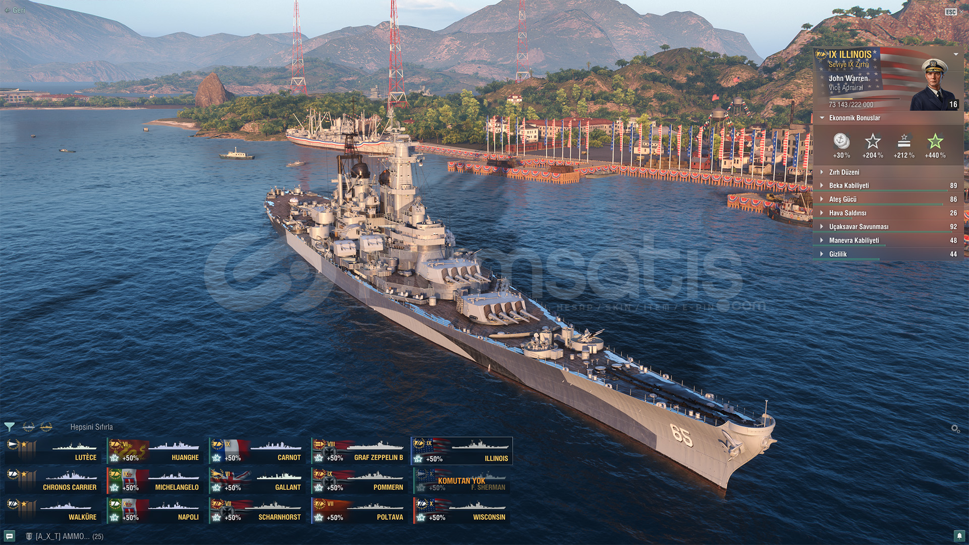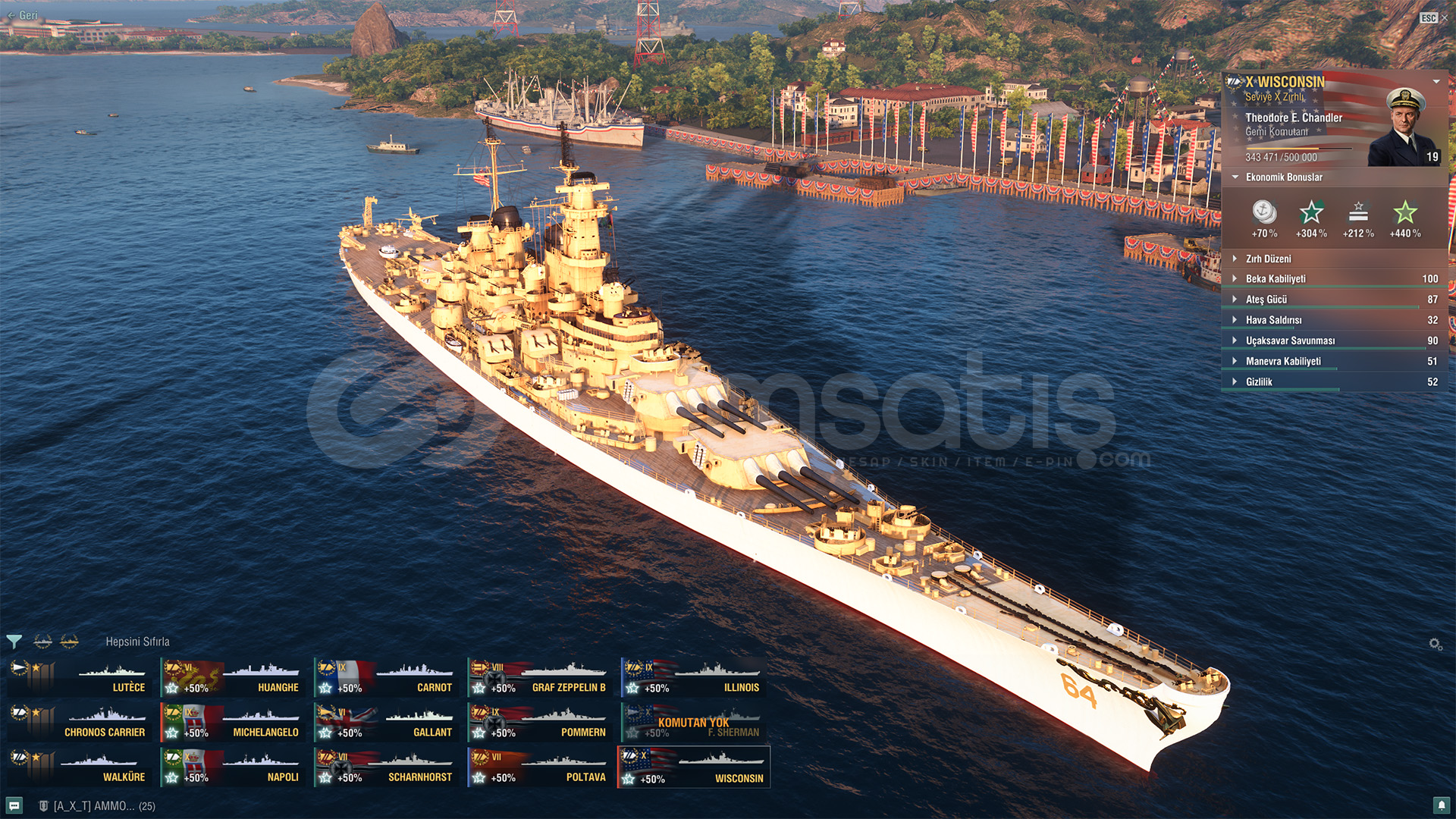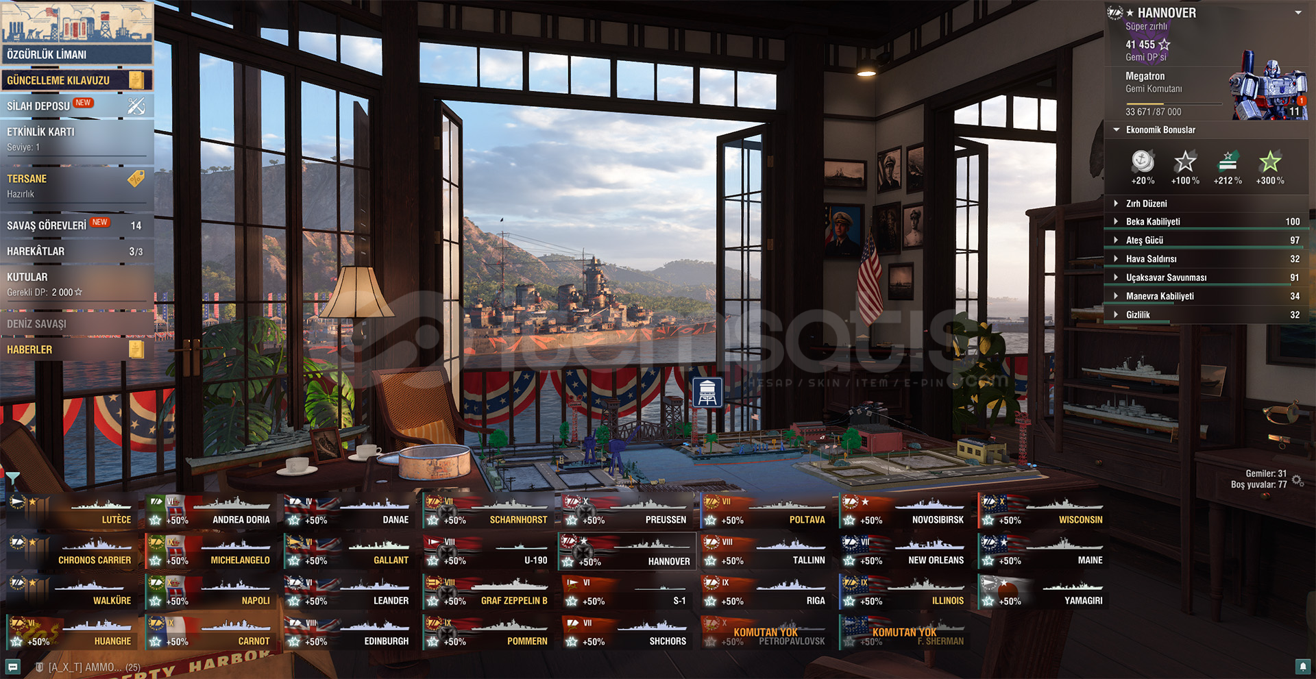 Winconsin, Michelangelo, Napoli, İllinoils 157. Milyon Kredi8. Bin çelikTOPLAM 31 GEMİ VARDIR. BOL EKONOMİK BONUS36. Bin Serbest DP36 Bin KömürWARGAMİNG HESABIDIR.