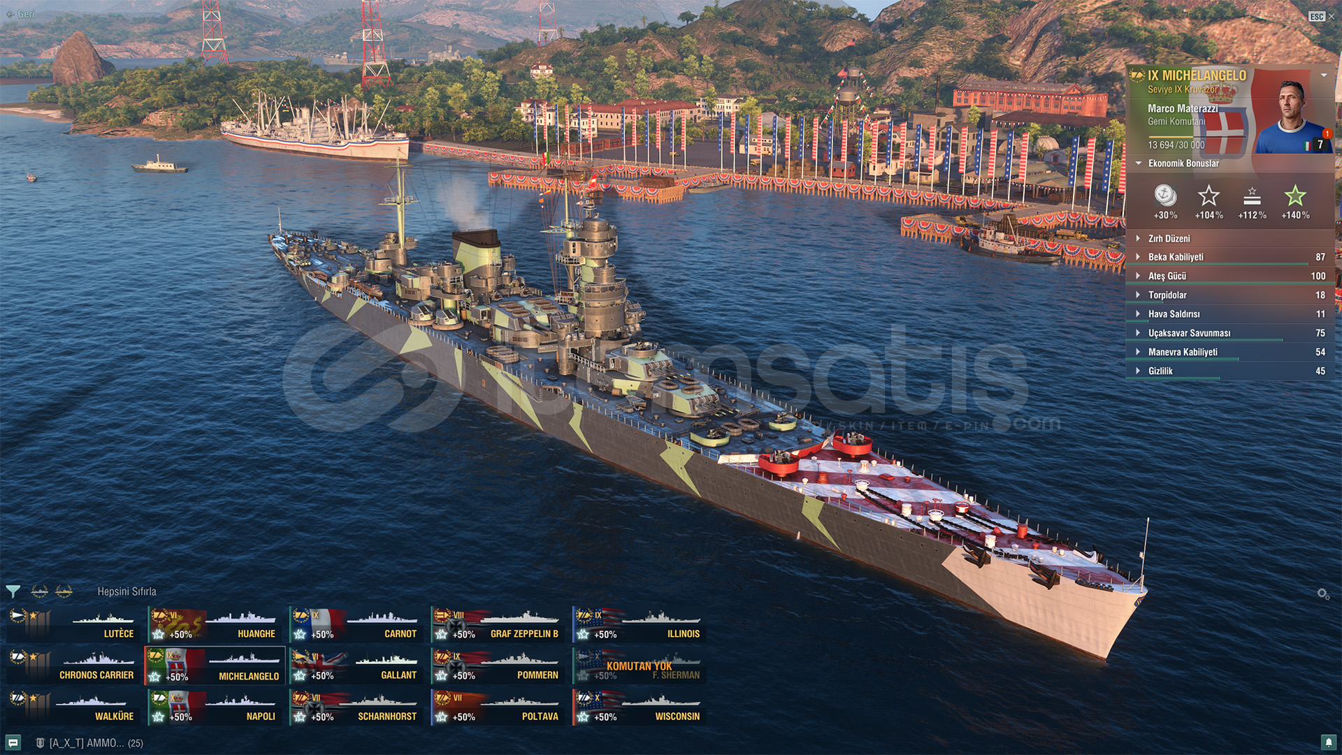 Winconsin, Michelangelo, Napoli, İllinoils 157. Milyon Kredi8. Bin çelikTOPLAM 31 GEMİ VARDIR. BOL EKONOMİK BONUS36. Bin Serbest...