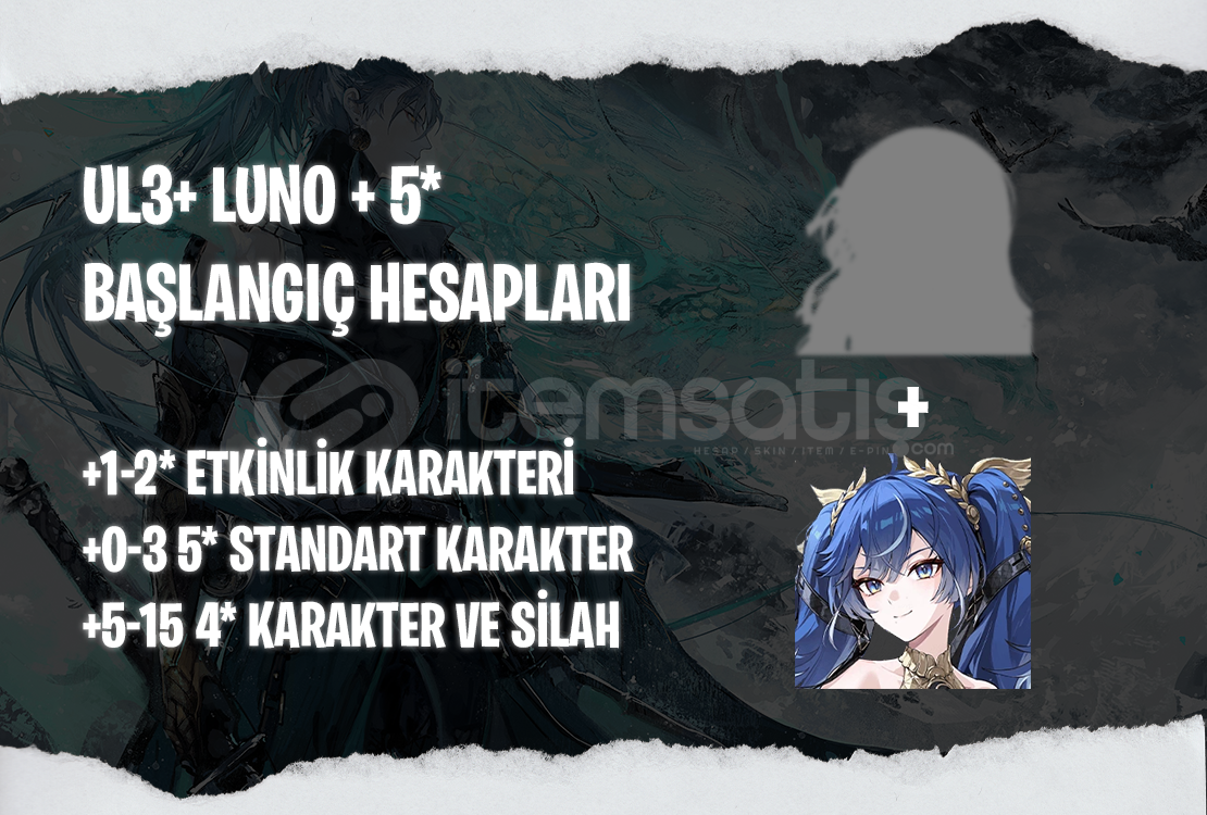 Bu ilanı satın aldığınızda UL3+ seviyesinde içerişinde Luno ve istediğiniz 5* etkinlik karakteri bulunan bir hesap tarafınıza iletilecektir.