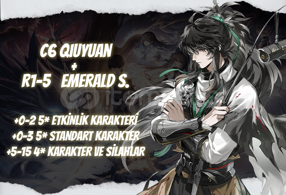 Bu ilanı satın aldığınızda UL35+ seviyesinde içerişinde C6 takım yıldızlı Qiuyuan ve R1-R5 arasında rastegele yükseltmesi olan Emerald Sentence bulunan bir hesap tarafınıza iletilecektir.