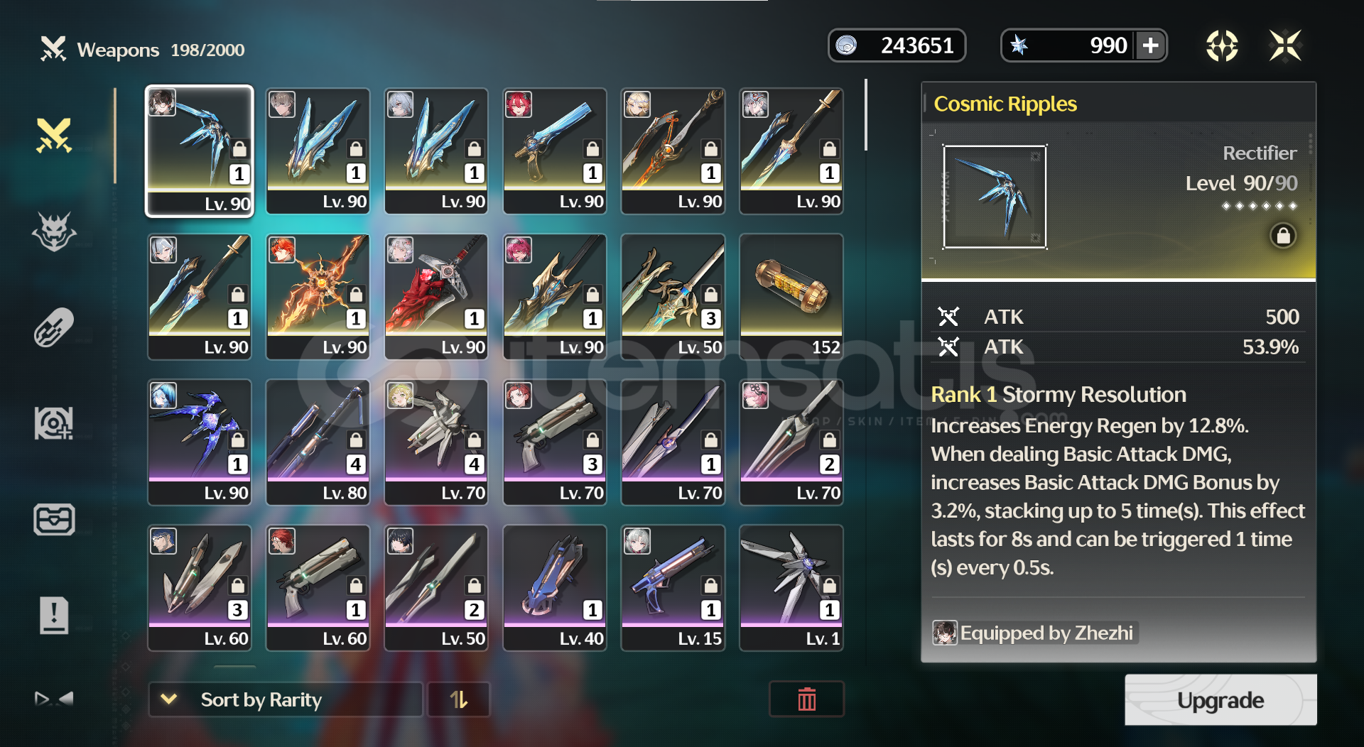 Hesapta ;S6 Jhinshi + KostümüC0R1 LupaShorekeeperS0R1 AugustaCartethyia + Blazing BrillianceChangli bisCiacconaZaniCarlottaCamellyaXiangli YaoZheshiVerinaCalcharoLingyangEncoreJiangxingStandart 5* SilahlarCosmic ripplesAbbys Surgers x2Emerald of Genesis x2Static MistLustrous RazorTower of Adversity ve Whimpering Wastesi rahat dönebiliyor hesap.Maplerin çoğu düzgün yapılmadı yani hesapta çok fazla kasılacak yerler vardır.Hesap hotmai...