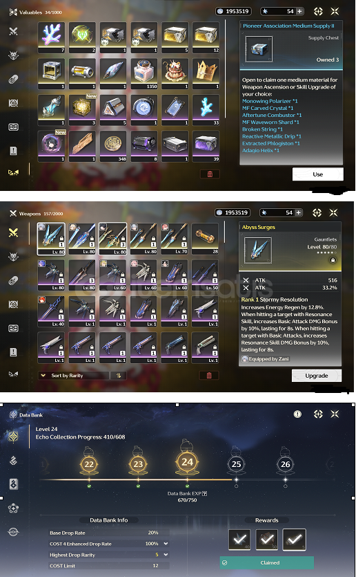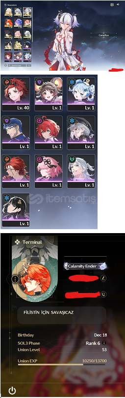 10 tane 5 yıldızlı karakter 11 tane de 4 yıldızlı karakter vardır 5 tane de 5 yıldızlı silah vardır SOL3 Phase lvl 6 unıon lvl 53