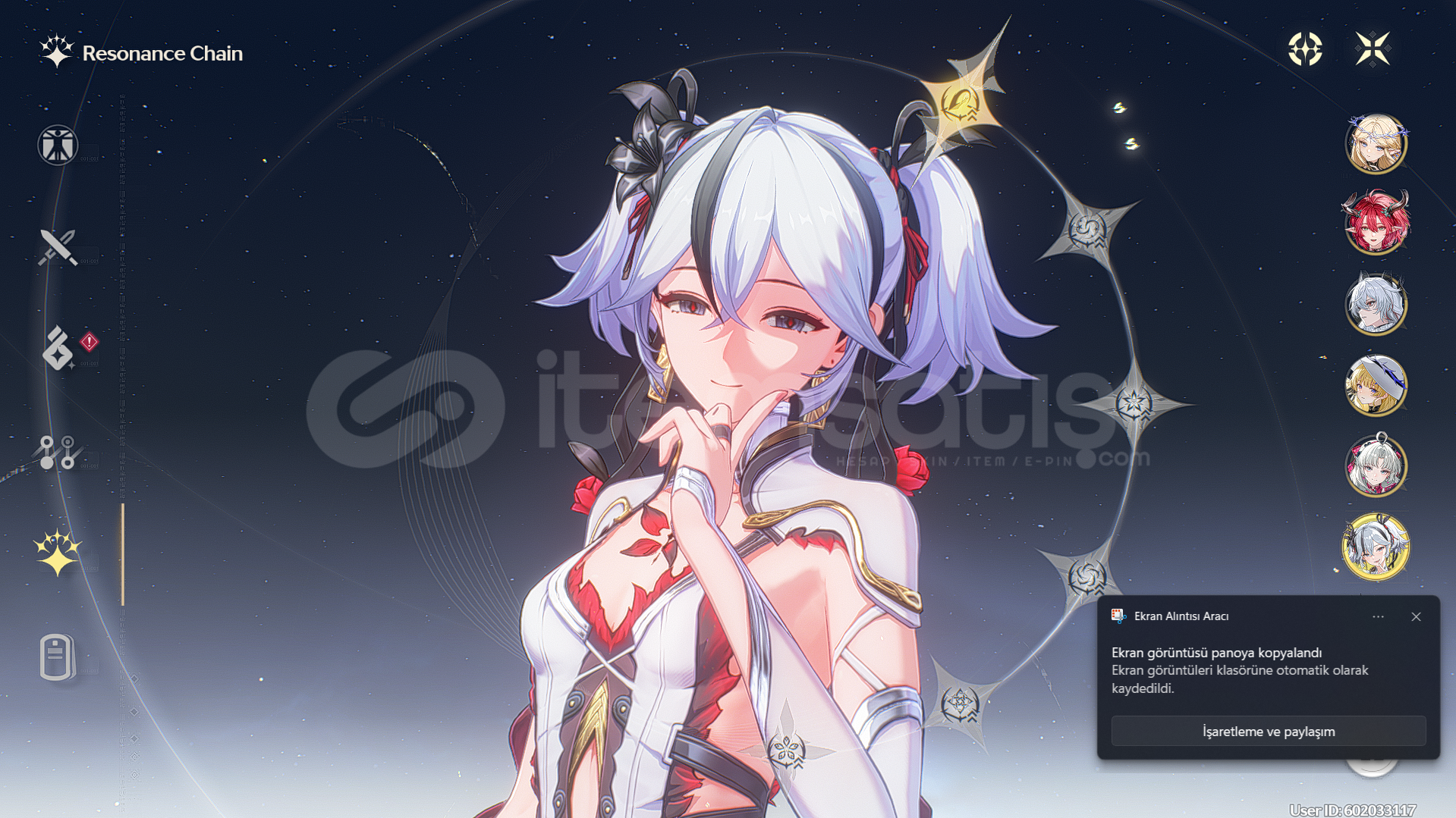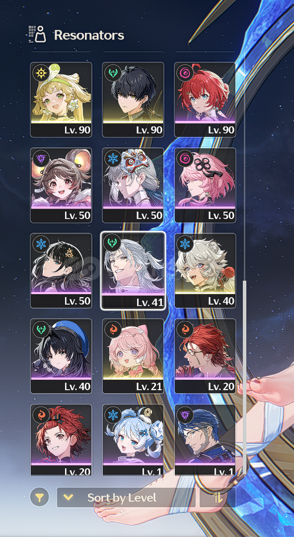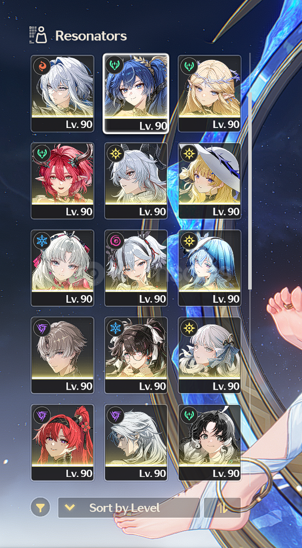 Oyun Çıktığından beri oynuyorum Hesap neredeyse full. Verina S1 jianxin Calcharo S2 Camellya S1 R1Cantrella S0Carlotta S0 R1Cartethyia S2 R1Ciaccona S0Encore S2Galbrena S0Iuno S0 R1jinshi S0 R1Lingyang S3Phoebe S0Phrolova S2 R1Roccia S0 R1Shorekeeper S0Xianling Yao S0Yinlin S0 R1Zani S0 R1Bolca karakter bulunmakta oyunun tüm etkinliklerini tamamlayabilir rahatça yüksek hasar vurabilirsiniz.
