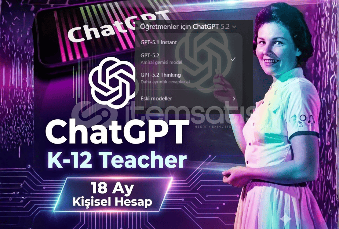 Öğretmenler için özel olarak sunulan, GPT-5.1 ve 5.2 Auto altyapısına sahip, doğrulanmış ve kullanıma hazır kişisel hesaptır.
