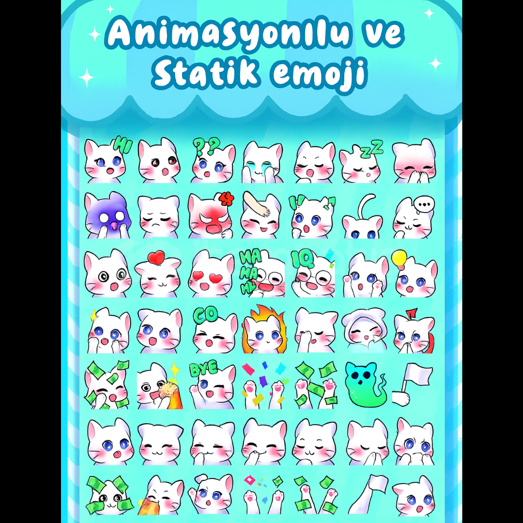 > CritixShop Kalite'nin ve Sağlamlığın Yeri>> Güvenilir bir şekilde size teslim edilir.>> Hakkında:>> Yayıncılara yönelik emojilerdir.>> Emojilerin animasyonları bulunmaktadır sadece görsel değildir.>> 40 Adet Emoji mevcuttur.>> Statik formatlar: 112x112 / 56x56 / 28x28>> Discord İçinde ayrıca kullanabilirsiniz.>