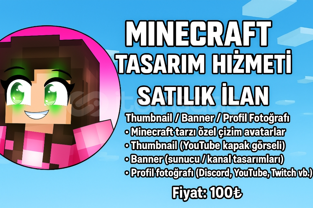 Minecraft içi thumbnail profil fotoğrafı Banner kapak fotoğrafları Eğer beğenmediğiniz bir kapak tasarımı varsa hemen değiştirebiliriz (discord Twitch YouTube) DC:emindesigner