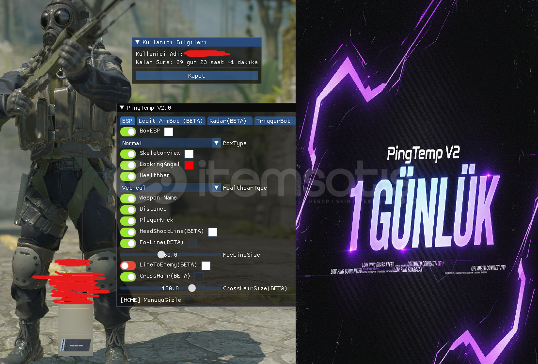 🥇🥇🥇1 GÜNLÜK Kullanım Hakkı🥇🥇🥇VAC BYPASS%99 SECURE!!BÜTÜN SORUMLULUK SİZE AİTTİRYapılması Gerekenler:Güvenlik Duvarını Kapatın Ramdeki bilgileri okudugu için sıkıntı çıkartıyorOyunu Çerçevesiz veya Pencereli Çalıştırın | ❌❌TAM EKRAN ÇALIŞTIRMAYIN❌❌Ayarlar Ka...