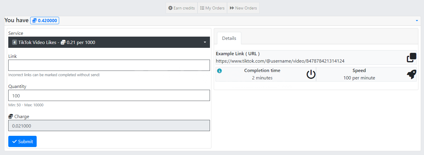 Tiktok izlenme ve beğeni, instagram izlenme, soundcloud dinlenme ve youtube abone atabilirsiniz.Jeton sayınıza bağlı olarak istediğiniz kadar beğeni, izlenme ve abone atabilirsiniz.Her 1 saatte 0.01 ücretsiz jeton toplayabilirsiniz.0.01 jeton 1 cent dolar değerindedir.Detaylı yazılı anlatım mevcuttur. (Kullanım)