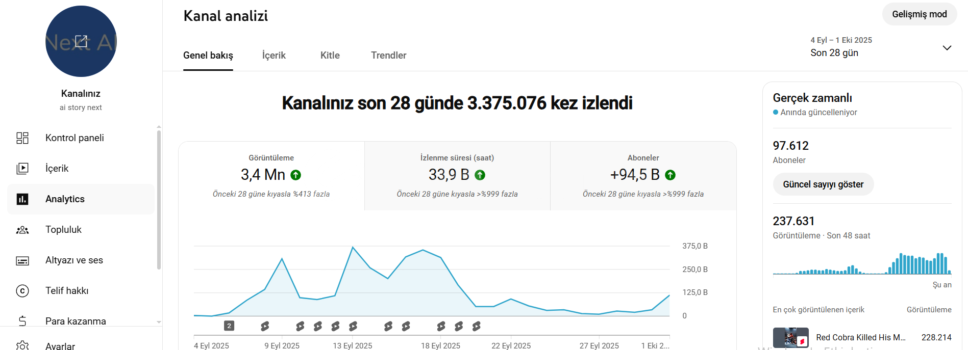 Kanala Günde 100K+ izlenme gelmektedir.