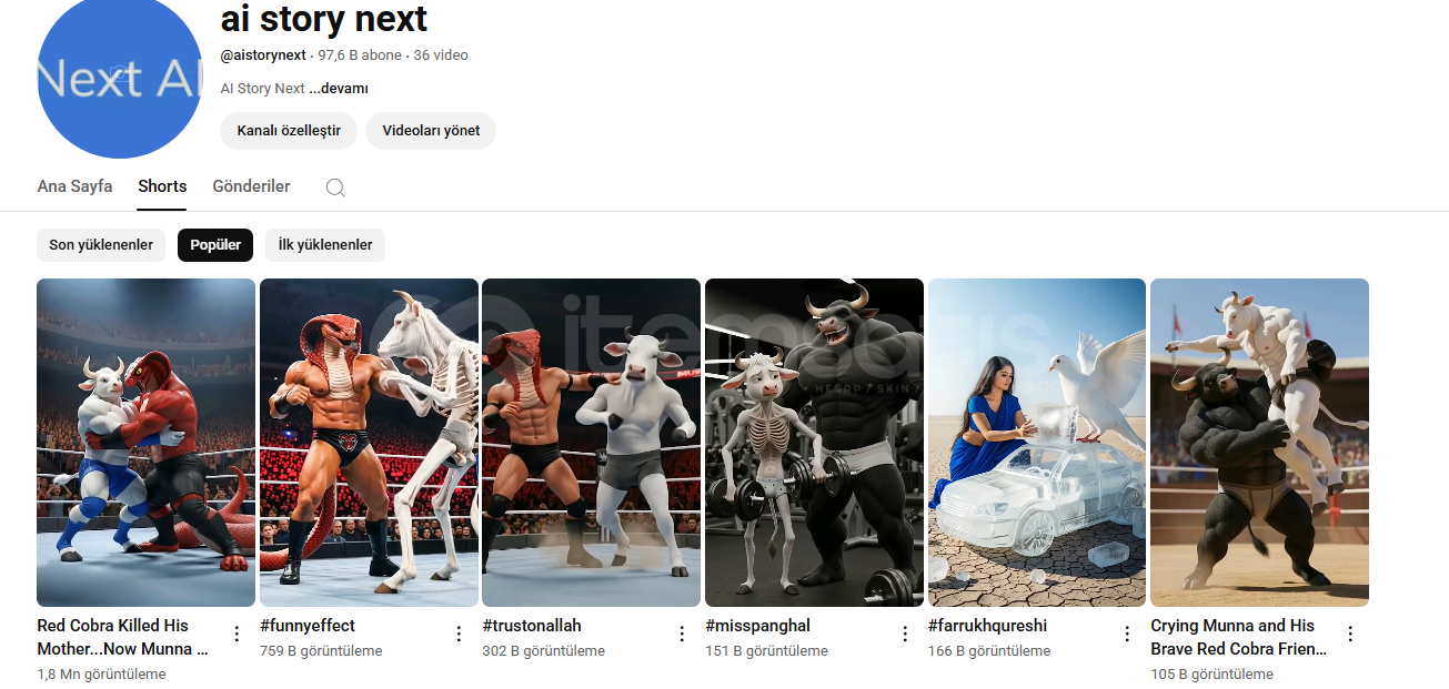 Yabancı kitlelidir. Yurtdışından gelen izlenmeler olduğu için Para kazanma aktif ettiğinizde yüksek geliri olur.Telif , İhtar vb yoktur.Kanala Günde 100K+ izlenme gelmektedir.Link : https://www.youtube.com/@aistorynext/shorts