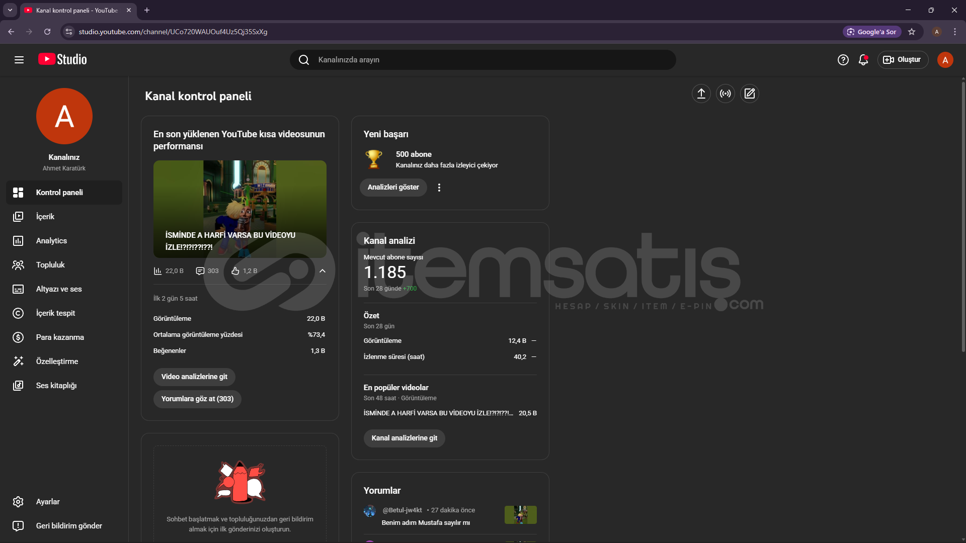 -Abonelerin Hepsi Gerçektir Asla Bot Abone Veya İzlenme Yoktur-Hesapda 1 Shorts Paylaşılmıştır-55,4 Saat İzlenme 7.1k İzlenme Vardır-Hesapda Düzenli Olarak Video Atmaya Devam Ederseniz Çok Hızlı 100k Aboneye Ulaşabilirsiniz!-Hesap Doğrulanmıştır Hesabı Alan Kişiye Hesabın Gmail Adresiyle Birlikte Verilecektir!