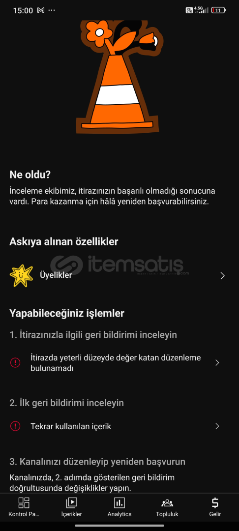 (İtemSatış satış temsilcisi, satış danışmanı v.b. adlar altında site üzerinden satış yaptığınıza dair özel mesaj gönderen kişilere inanmayın ve bu tarz durumlarda lütfen canlı desteğe bağlanarak durumu bildirin.)