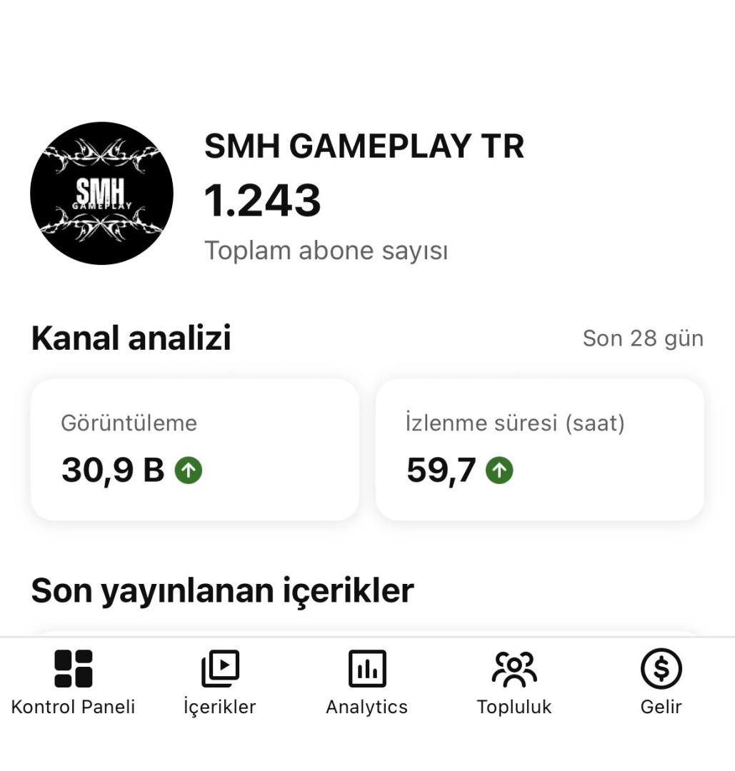 550k görüntülemesi var fakat videoları sildim oyun tarzında attım ama motosiklet kanalı olduğu için 200-300 izlenmeden fazla gelmedi abonelerin hepsi motor sevenler motovlog kanalı yaparsanız tekrardan eski popülerliği yakalarsınız motorum olduğunda çok izlenirdi yatay video ve shortsda da