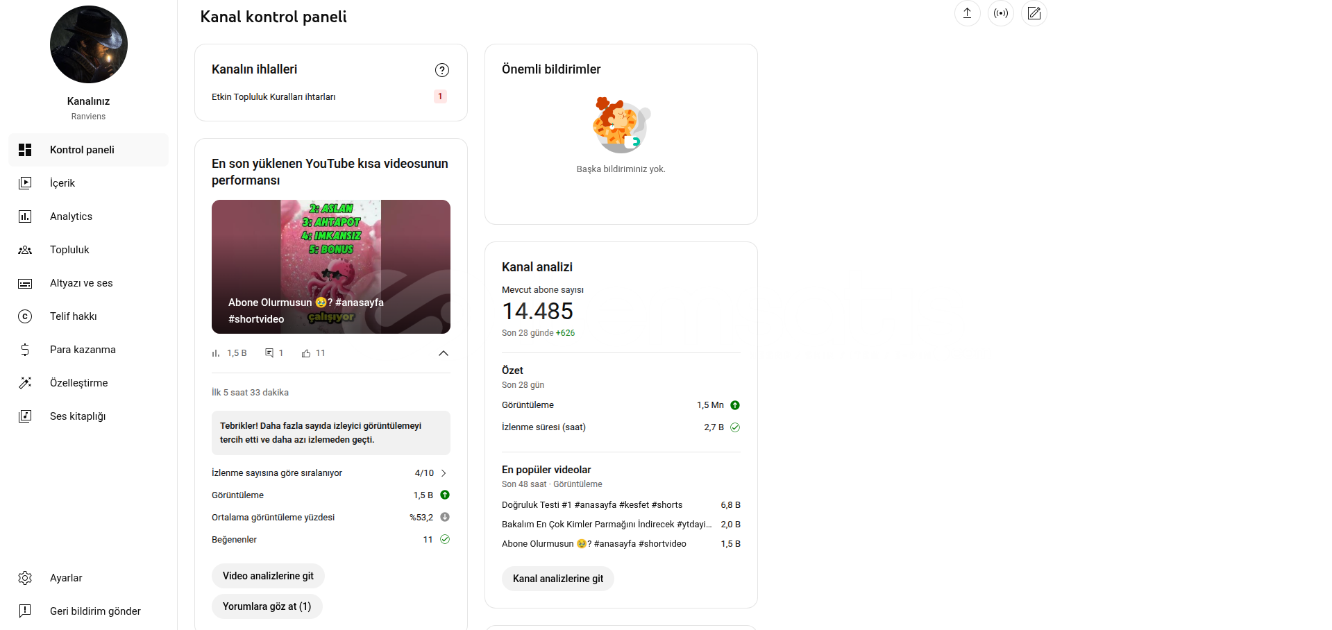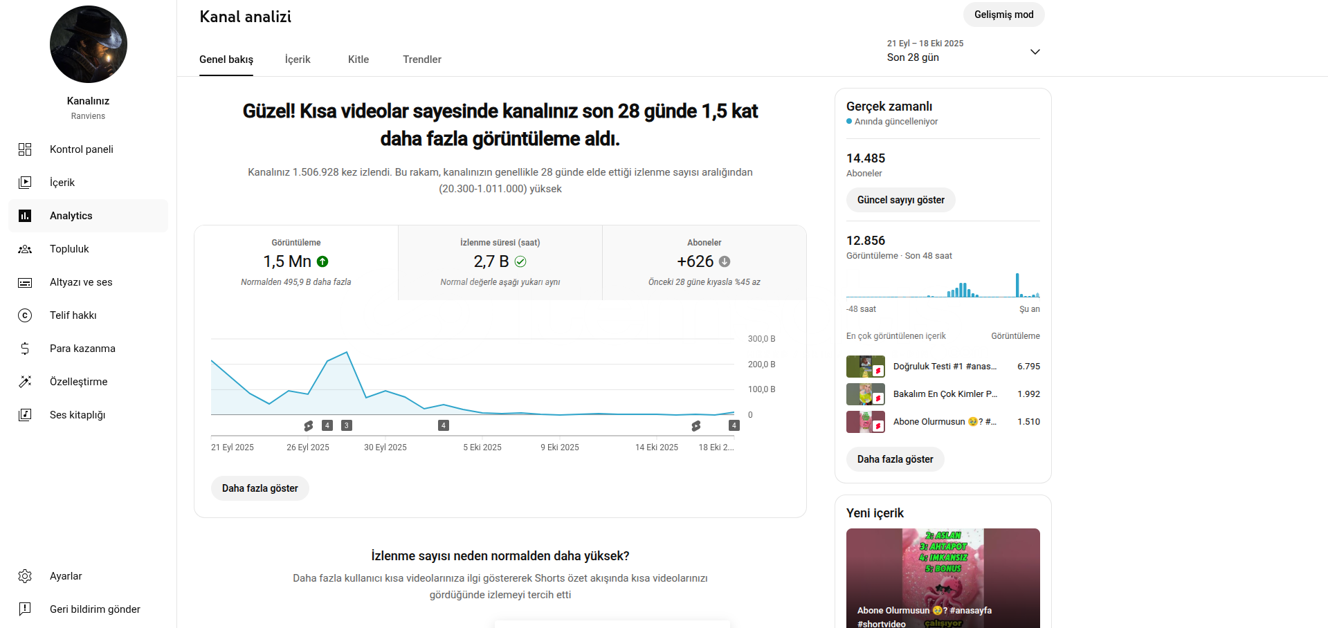 ⚡ Kısa sürede yüksek izlenme almış, potansiyeli yüksek bir kanal.