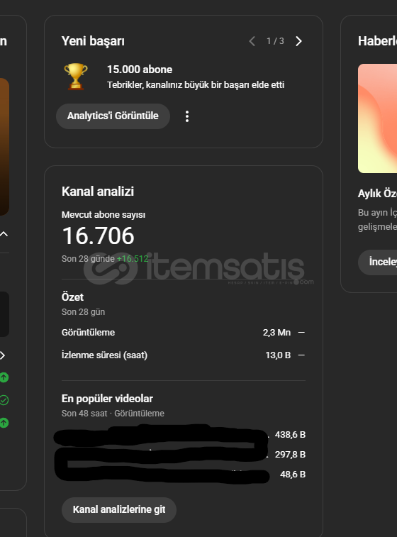 Güzel değerlendirmen için çok teşekkür ederim :) YouTube kanal ve hesap satışlarında her zaman güvenilir, sorunsuz teslimat için buradayım ✅ Yeni ve aktif kanallar için ilanlarıma göz atabilir, siz de güvenle alışveriş yapabilirsiniz