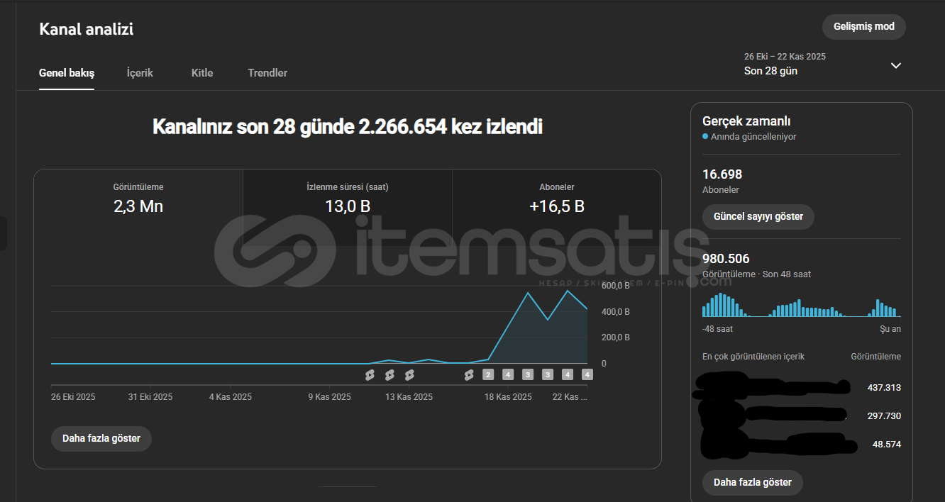 📌 Abonelerin hepsi gerçektir, asla bot abone veya izlenme yoktur.📌 2.287.332 görüntüleme Görüntülenme Almıştır. (HALA DEVAM EDİYOR SON 48 SAAT 982K)📌13,0K İZLENME SAAT!📌 Kanalda 25 Shorts paylaşılmıştır. Her gün paylasılmaya devam ediliyor📌 Günden güne katlanarak etkileşim,abone artıyor.📌 Düzenli video atmaya devam ederseniz &cc...