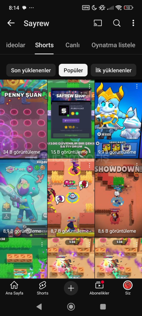 • kanaldaki videoları silemezsiniz!