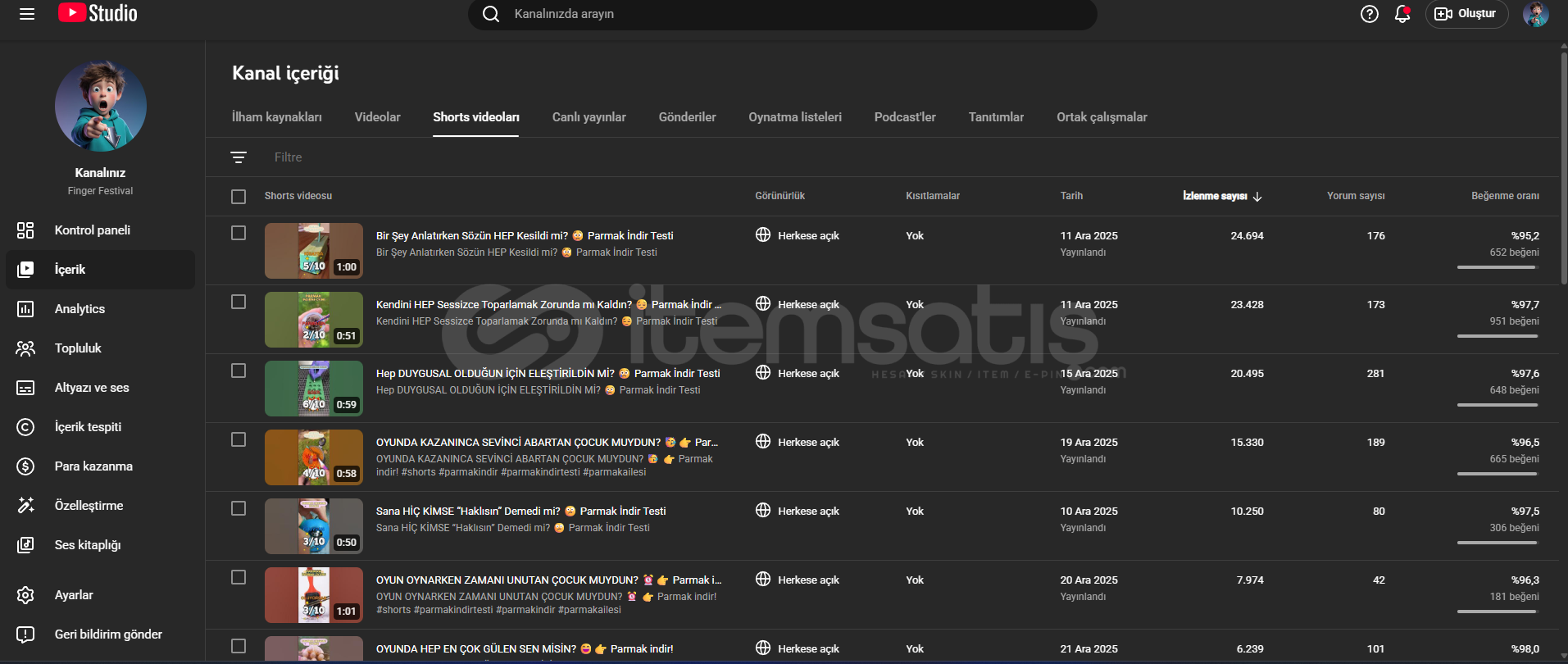 shotrs Videoların izlenme hacmi çok yüksektir,