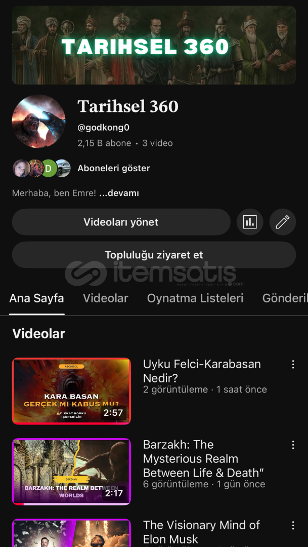 ABONE SAYISI: 2.152BHER HANGİ BİR KISITLAMA TELİF İHTAR YOKTURTEMİZ MAİL MARKA HESABI DEĞİLDİR MAİL İLE TESLİM EDİLECEKİNDİRİM YOKTUR KANAL ÇOK AKTİF DEĞİLDİRKANAL KURULUM TARİHİ - 2015BAHİS KUMAR OYNAYANLAR İÇİN EFSANE BİR KANALDIR BAHİS İÇERİKLERİ KOLAY TUTTUĞU İÇİN BU KANALI UÇURABİLECEK B&#...
