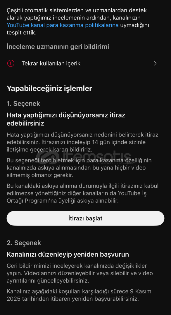 YOUTUBENİN DEDİĞİNE GÖRE 9KASIMDA TEKRAR BAŞVURU YAPABİLİRSİNİZ DİYOR