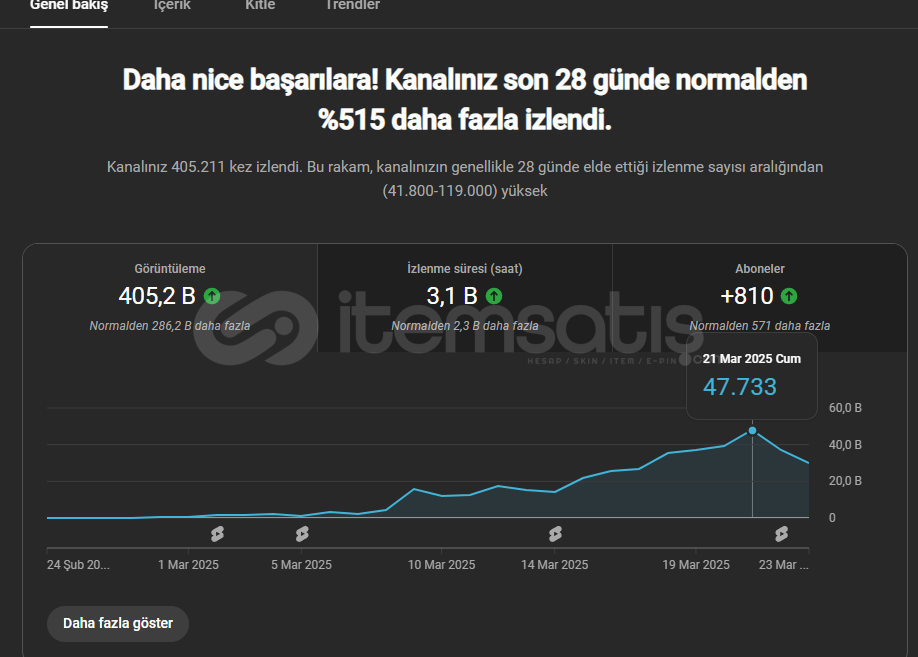 🎯Düzenli video atılırsa kısa sürede 50K aboneye ulaşır.