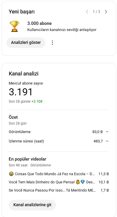 Youtube algoritmaları sebebiyle bazen abonelerin bir kısmı, bazen de tamamı silinebilir. Lütfen düşük miktarda alımlar yapın ve telafi hizmeti sunan satıcıları tercih edin.