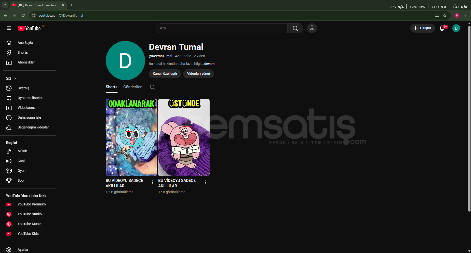 423 Gerçek Aboneli YouTube Kanalı Satılık