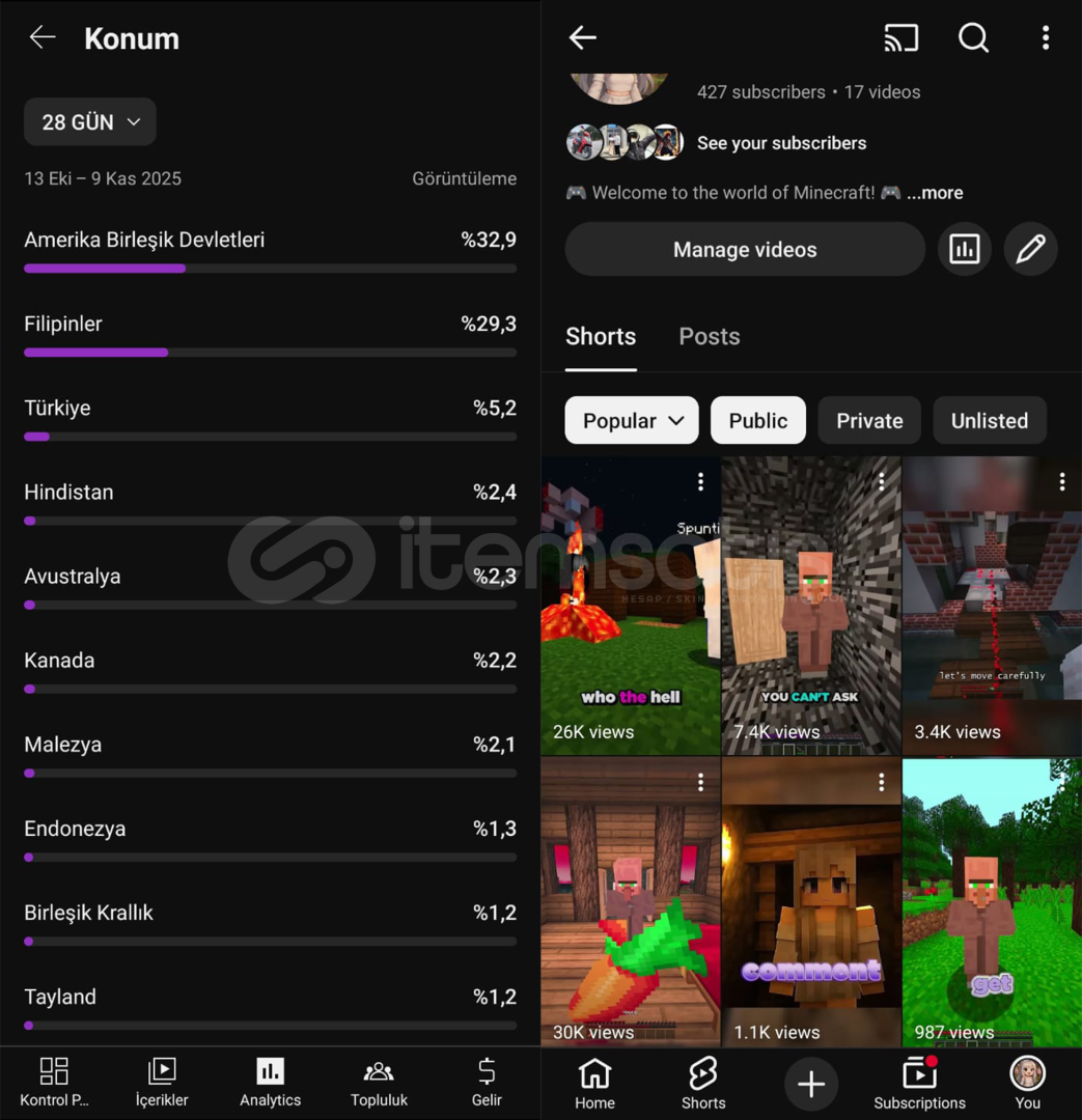 Kanalda 450 abone mevcuttur tamamı organiktir.Kanal kitlesi ABD ağırlıktadır. Görsellerde mevcuttur. Bu sayede para kazanmayı açarsanız daha yüksek gelirlere ulaşabilirsiniz.Minecraft Roleplay kanalıdır. İngilizce bilmenize veya konuşmanıza gerek yok. Tüm materyalleri vereceğim.Kanalda kullanılan içeriklerin proje dosyaları, içerik paketleri, ilham aldığımız kan...
