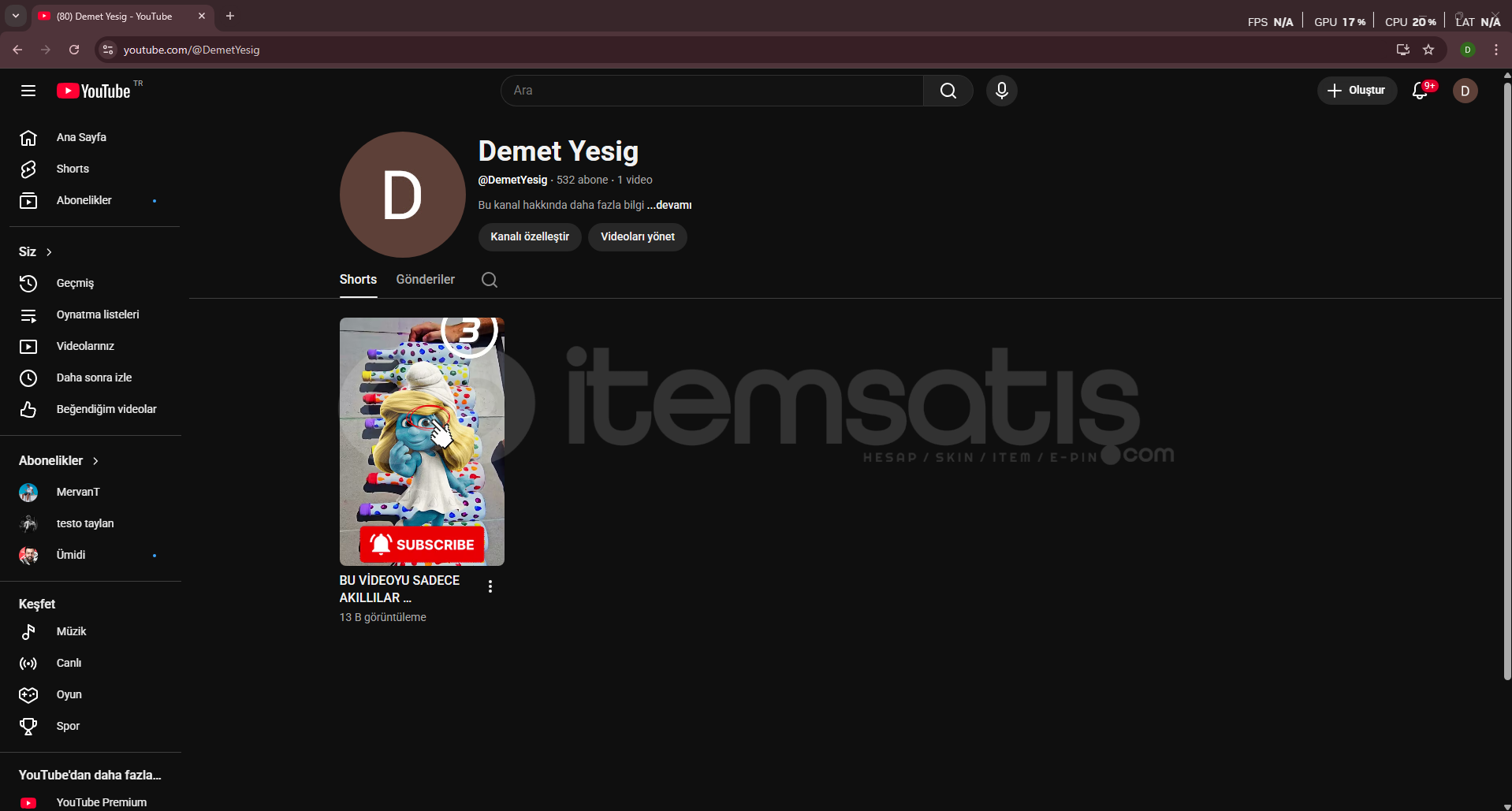 532 Gerçek Aboneli YouTube Kanalı Satılık