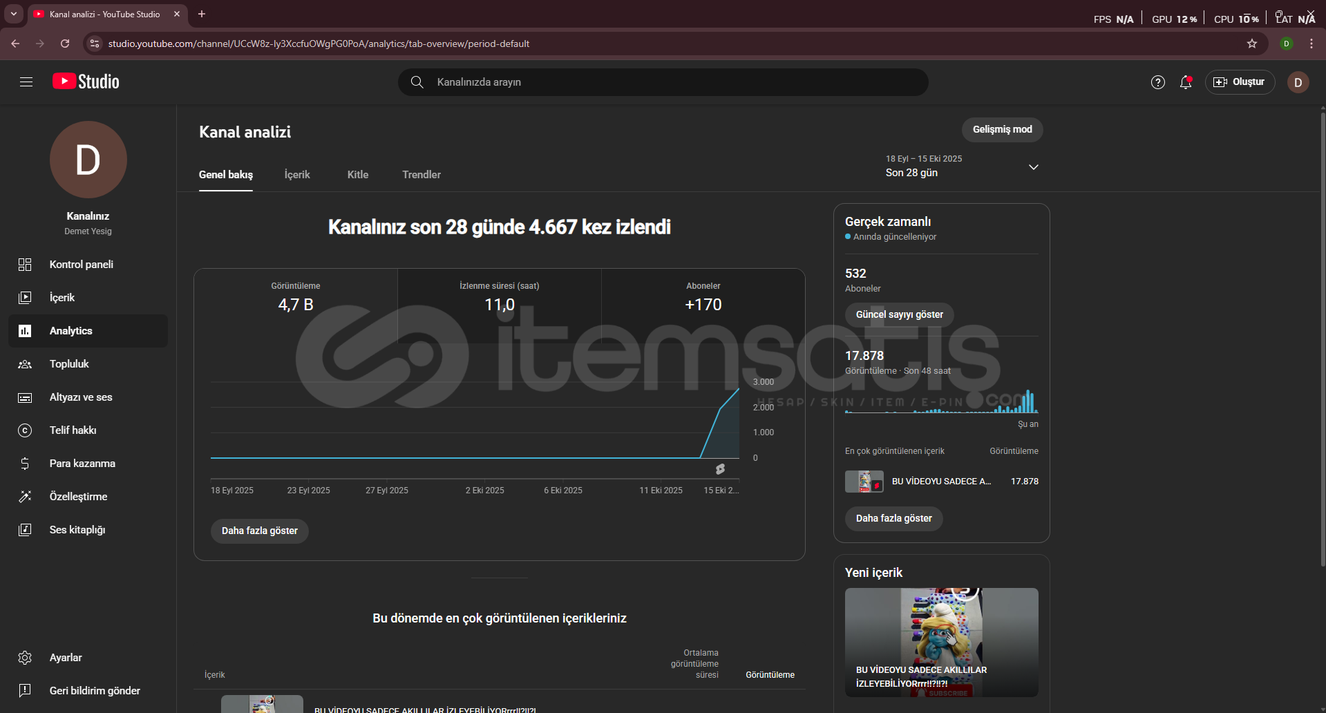 🎬 532 organik ve aktif aboneli YouTube kanalı satılıktır.