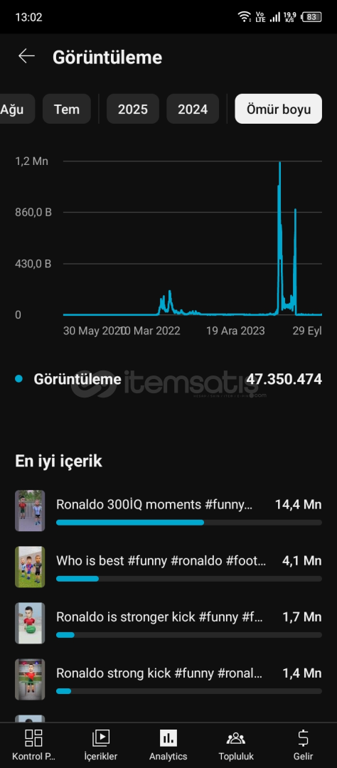 60 bin abone + 47 milyon izlenme ve toplam like sayısı 1.2 milyon dehşet bı kanal Keşfet delisi ve tamamen gerçek takipçiler
